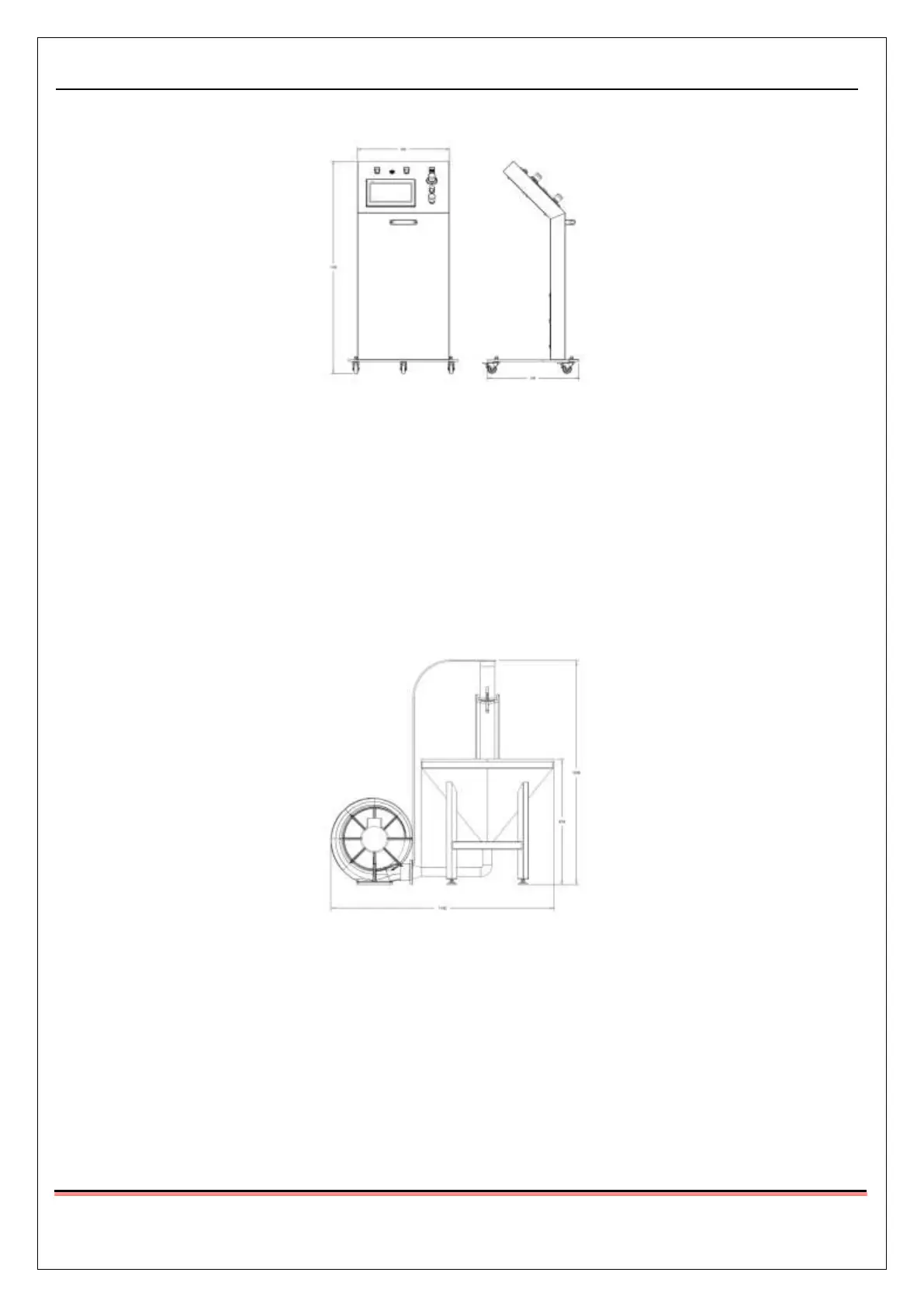 roaster. It consists of a cone shaped hopper standing on the floor, a fan and stainless steel pipes that