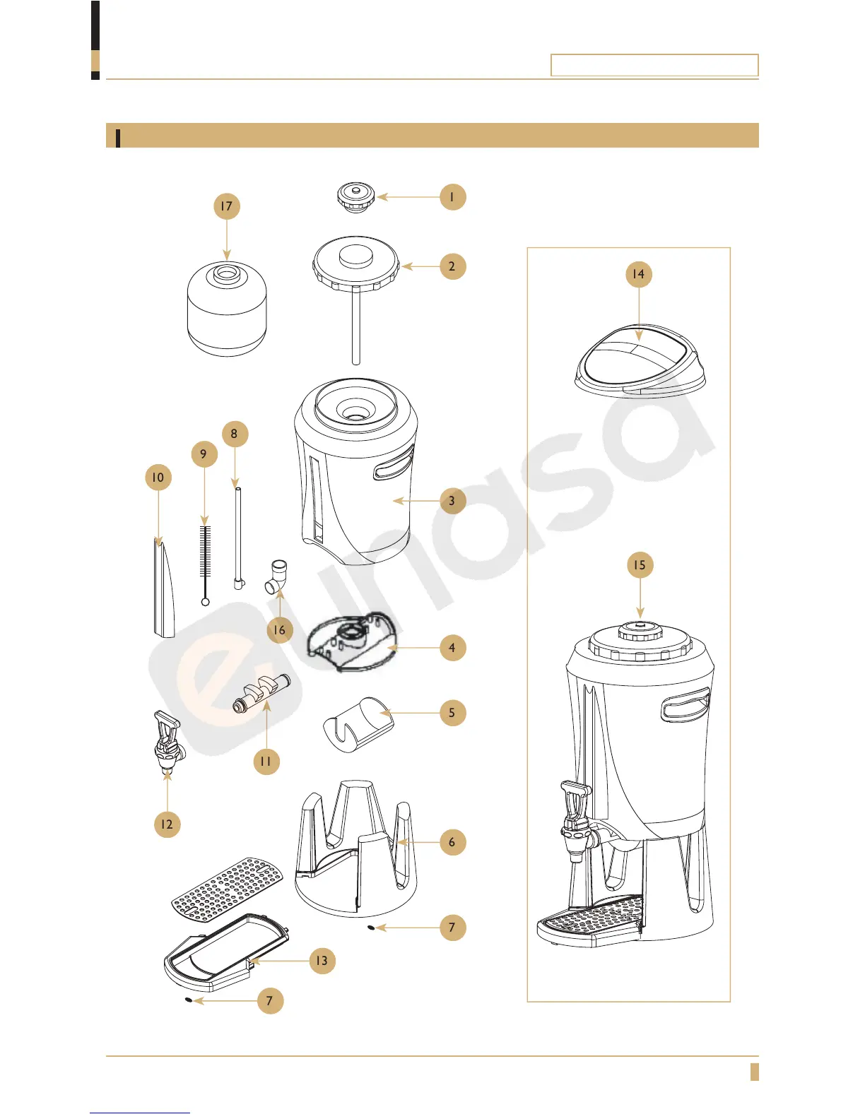 Coffee Queen A-2 - Serving Station 5 L Exploded View and Parts List