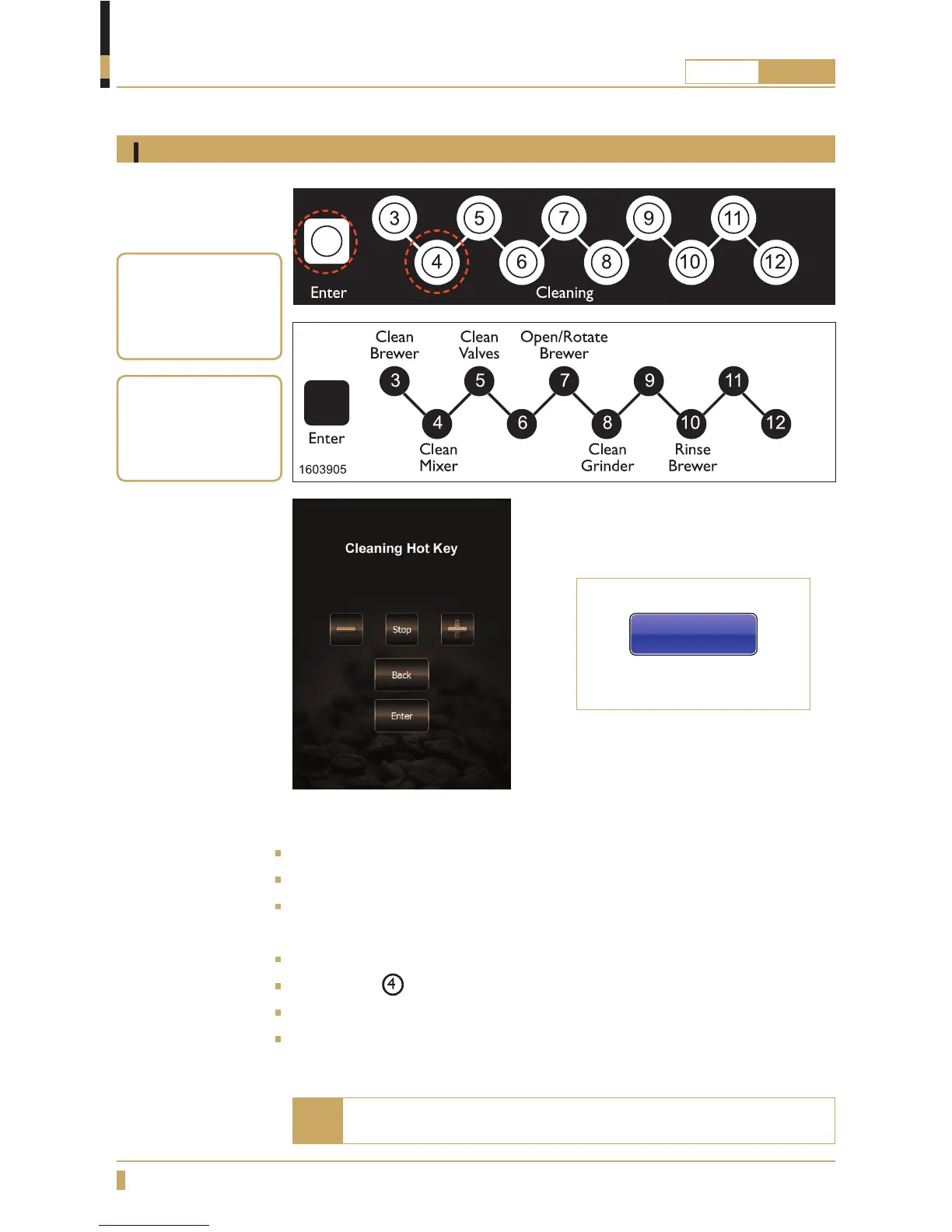 Cleaning Hot key appears on the display (cleaning panel is now active).