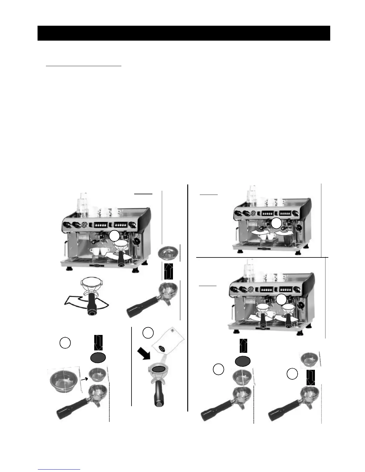 Unhook the filterholder from the group (A fig. C). Put the 2 cup filter and the rubber pad in filterholder.