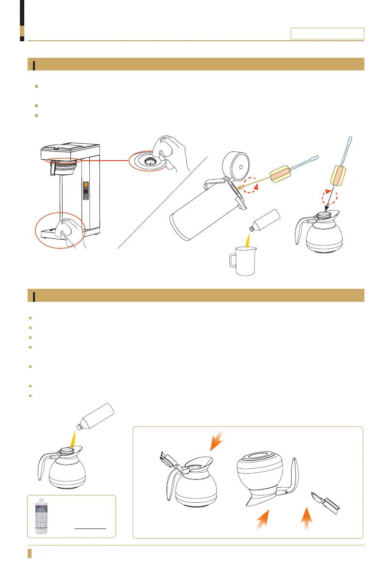 Wash the thermos, decanter(B) and the lter holder with liquid solution for coffee machines. Always