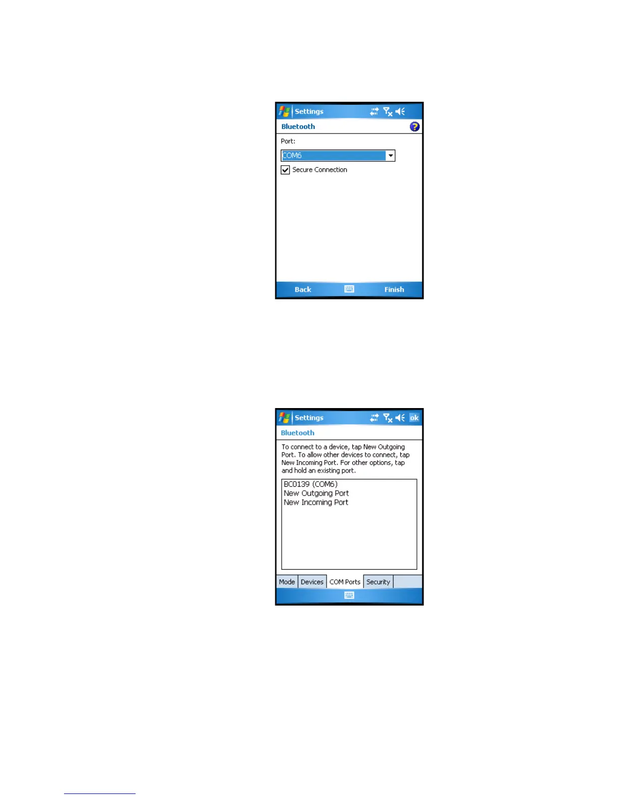 Pocket PC PDA. The (Bluetooth) COM Ports subwindow will be