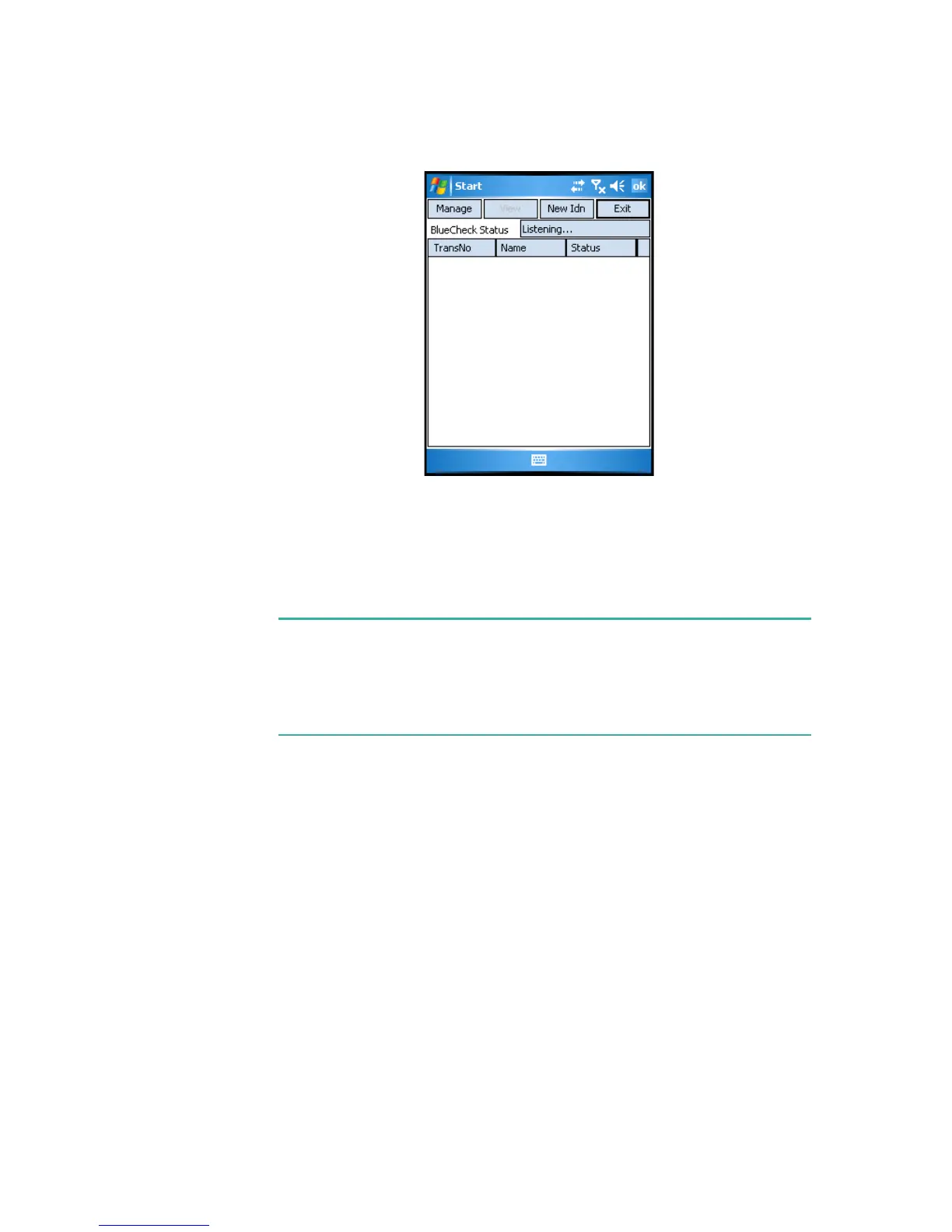 3 Wait until the BlueCheck capture device is connected to the Pocket PC