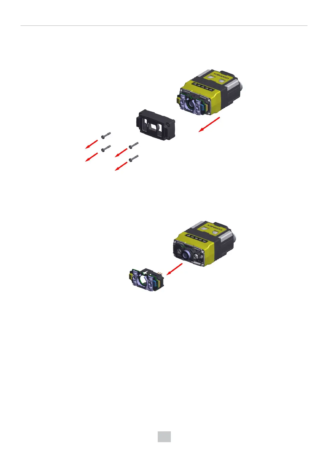 1. Unscrew the four M2x12mm Phillips Pan head screws, then take off the metal cover from the reader.