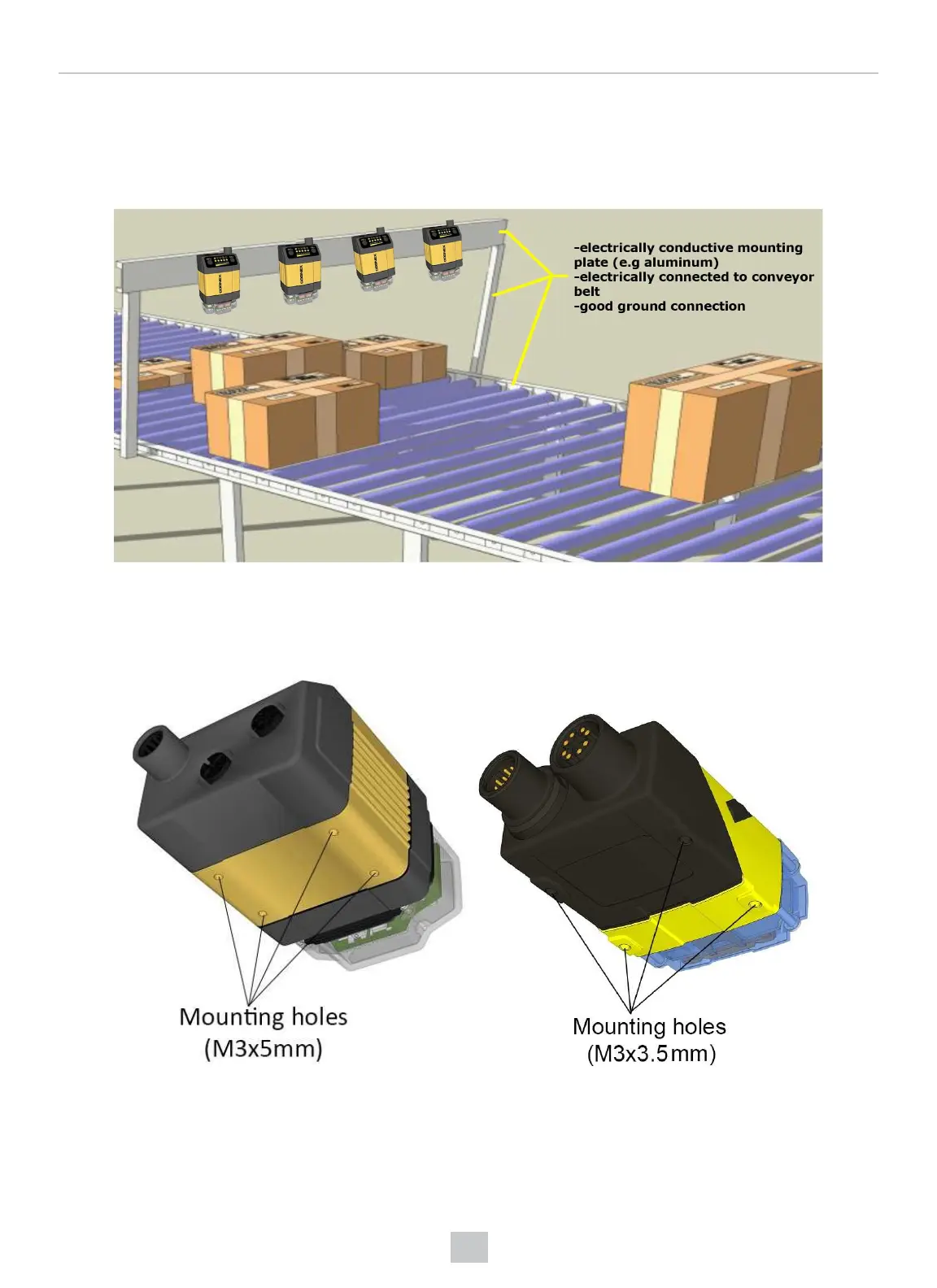 For this purpose, Cognex recommends that you connect at least one of the 4 mounting holes on the bottom of the device