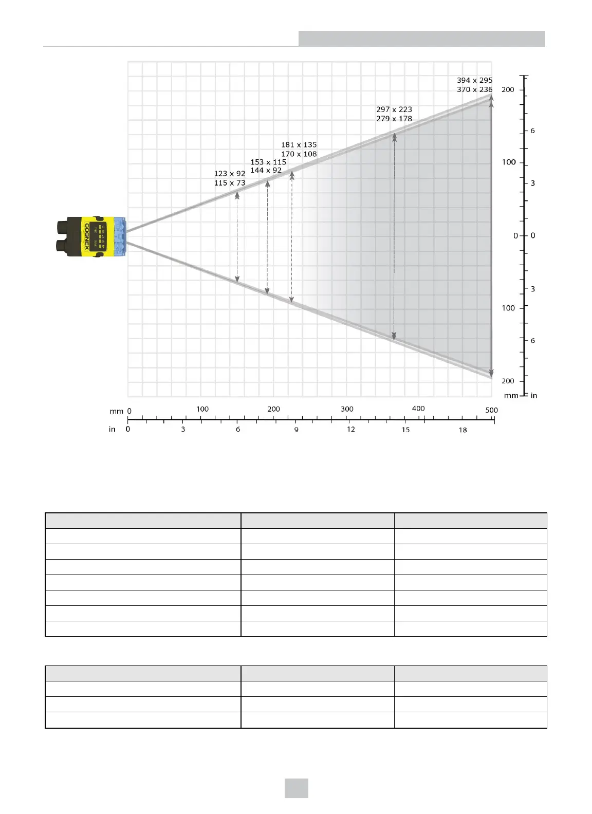 The following tables show the FoV widths of the 16 mm lens at various distances.