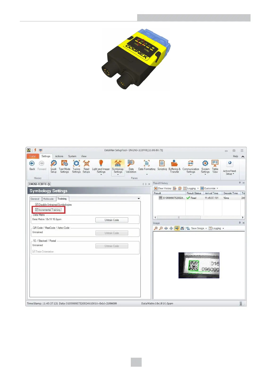 With incremental training enabled, you can train the reader using multiple images showing the symbologies you expect