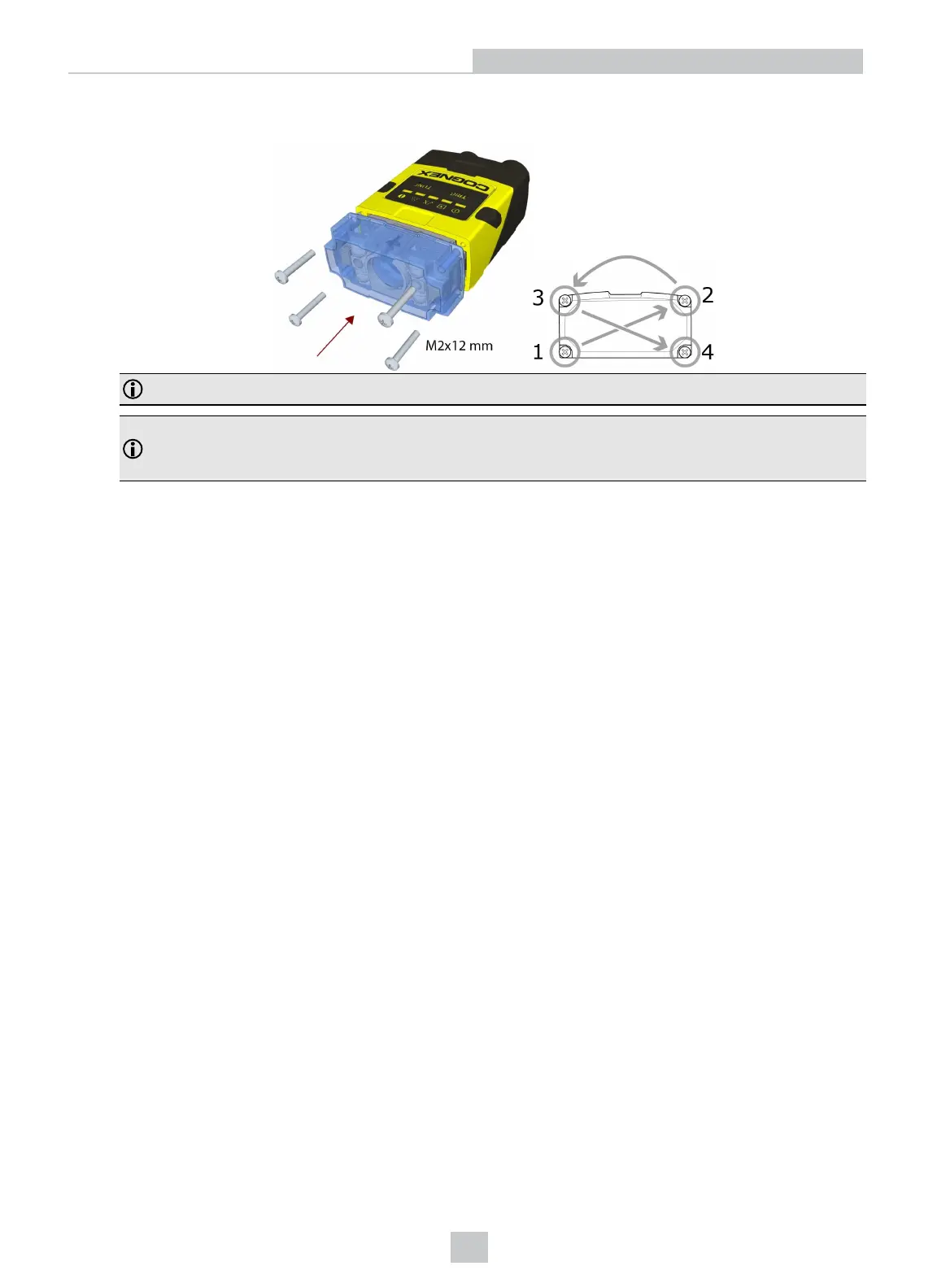 8. Attach the front cover. Observing the tightening sequence below, tighten all four M2x12mm Phillips Pan screws to