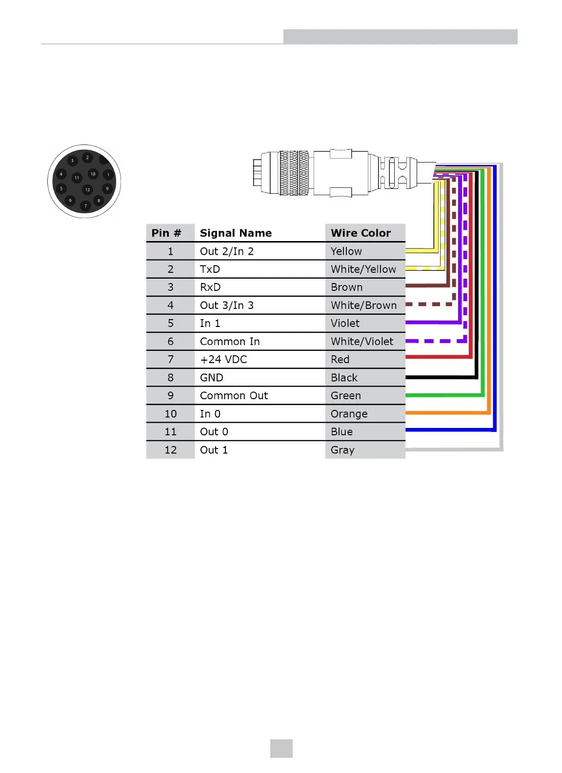 The I/O cable provides access to trigger and high-speed outputs. The cable is not terminated. Unused wires can be