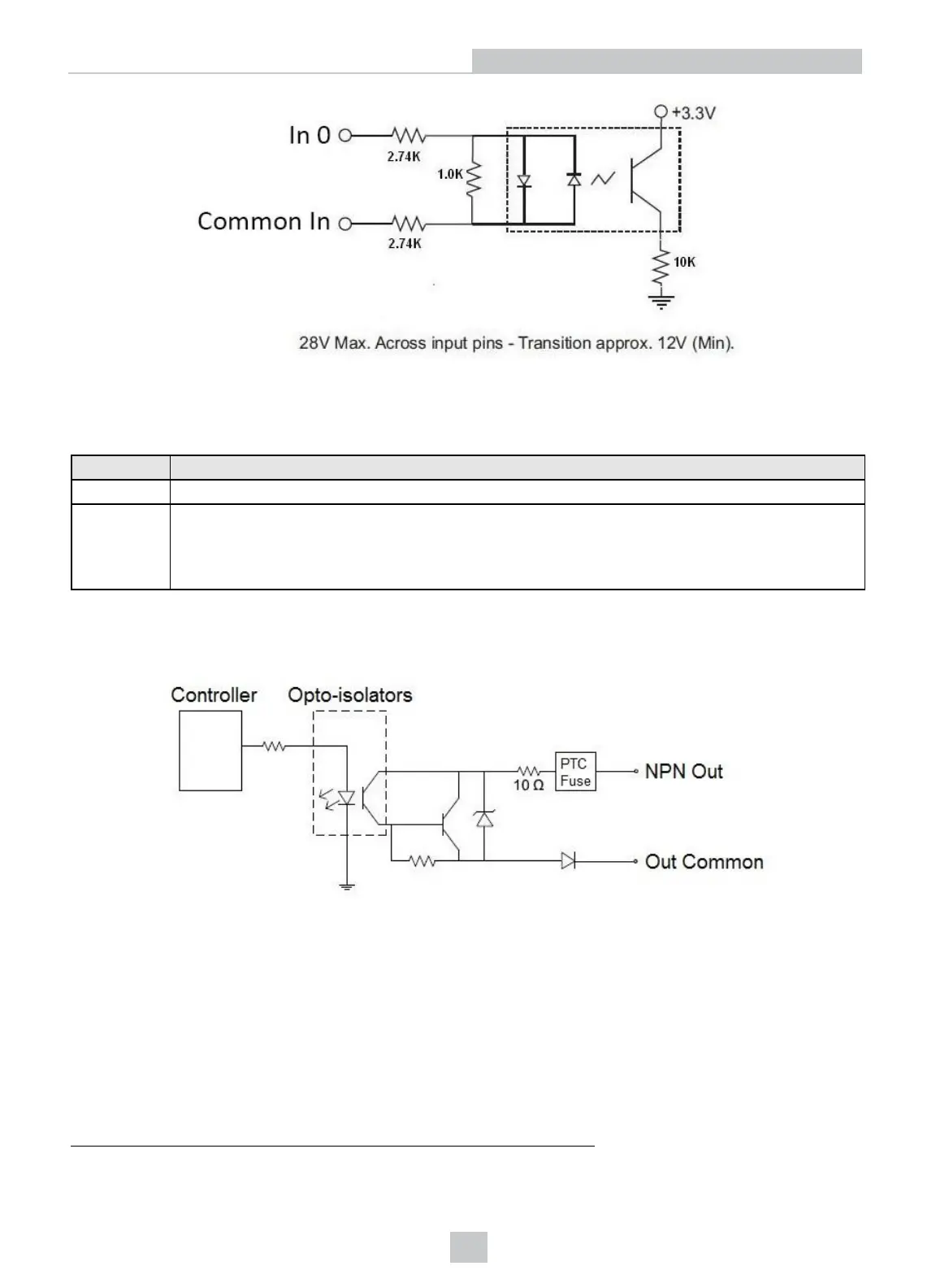 For NPN lines, the external load should be connected between the output and the positive supply voltage (<28VDC).