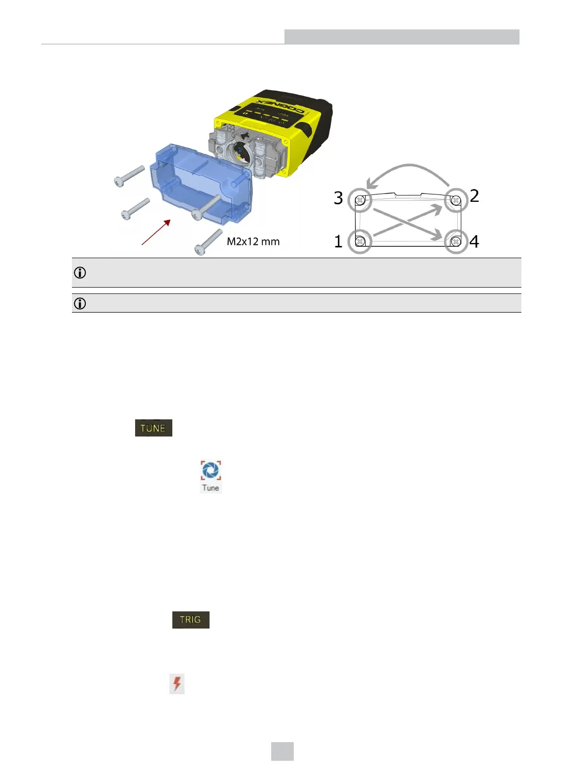 3. Remount the front cover. Observing the tightening sequence below, tighten all four screws to 9 Ncm using a