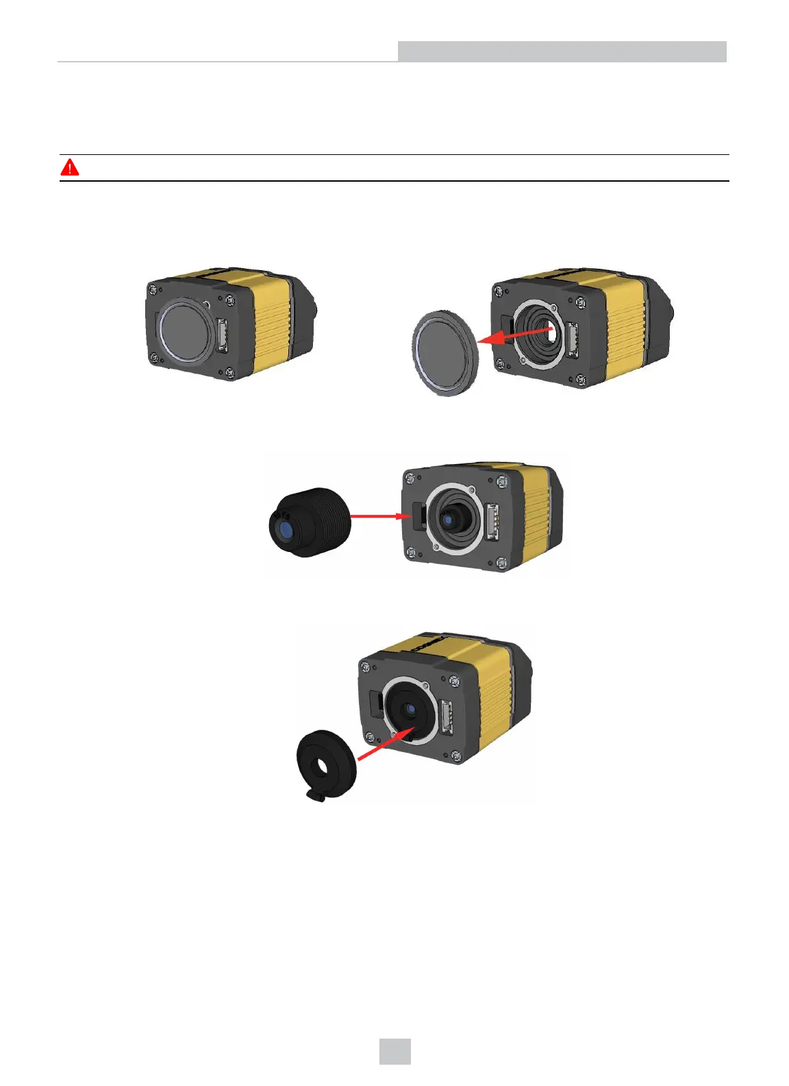 WARNING: Disconnect the DataMan 360 reader from power before installing the lens and light.