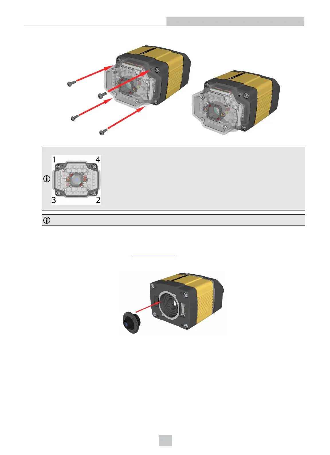 Note: Tighten in sequence. Torque limit: 9 Ncm (0.8 in-lbs).