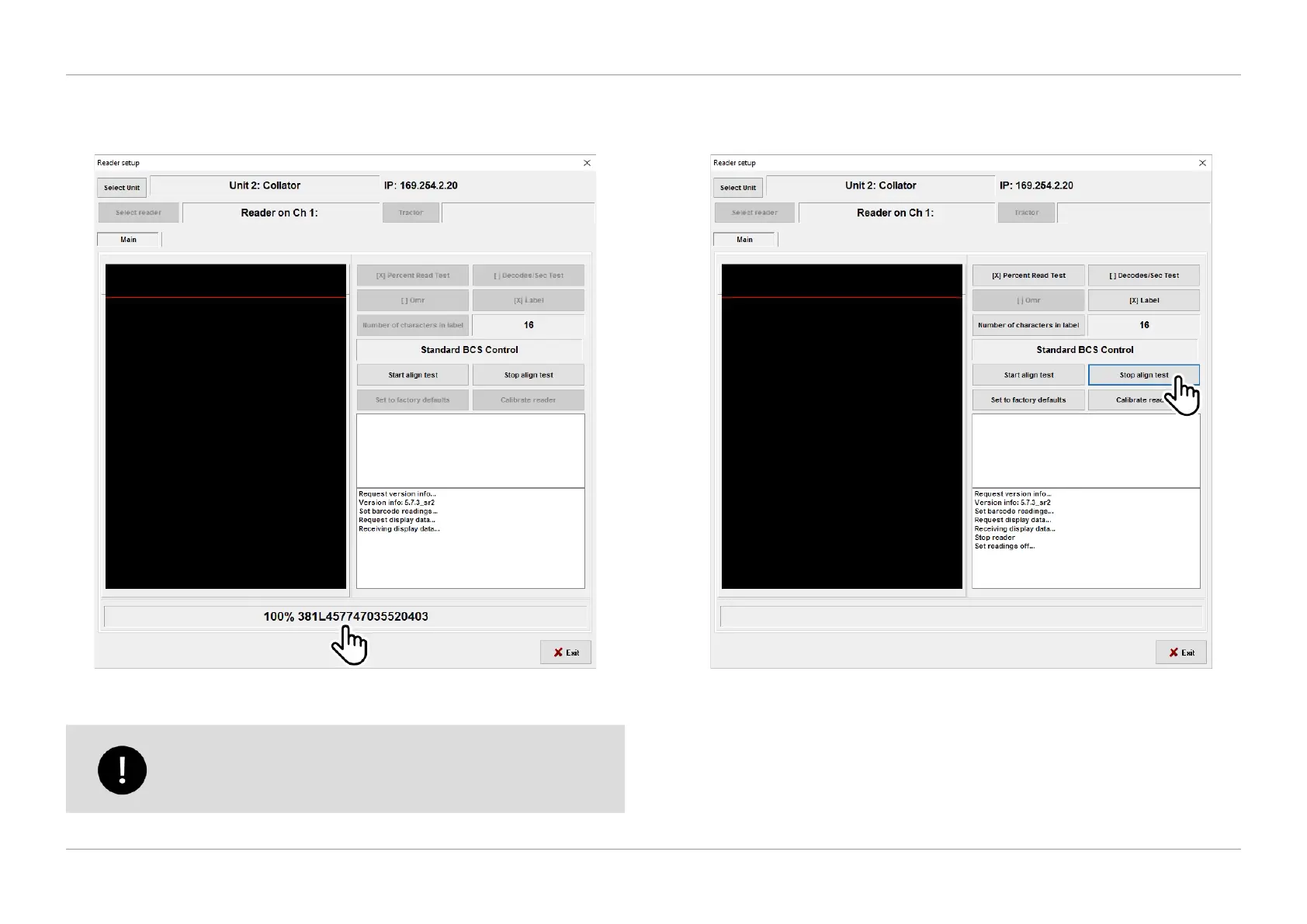 4. If the label failed to read, and the alignment test is less than 100%. Select