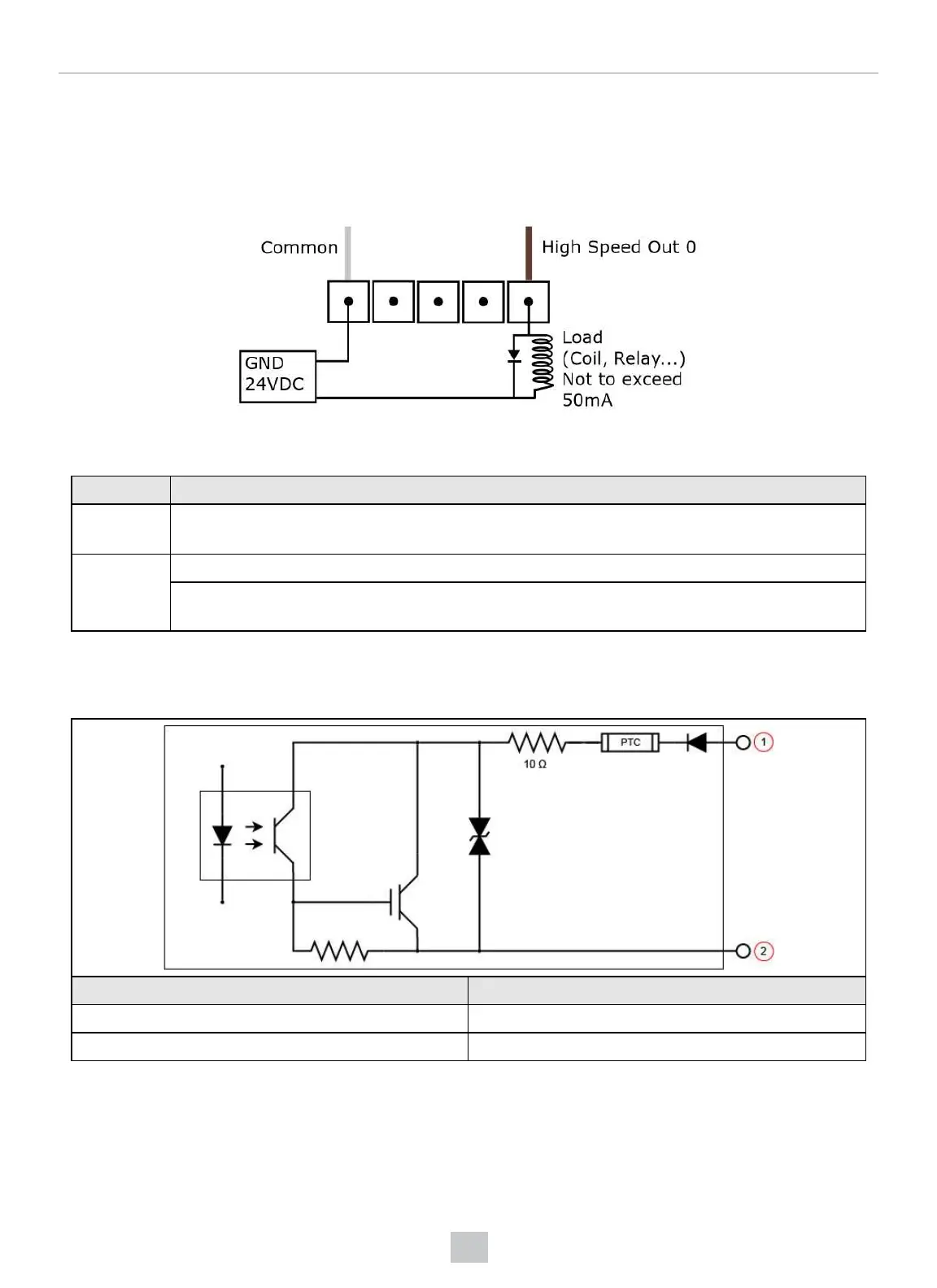 To connect the high-speed outputs to a relay, LED or similar load, connect the negative side of the load to the output and