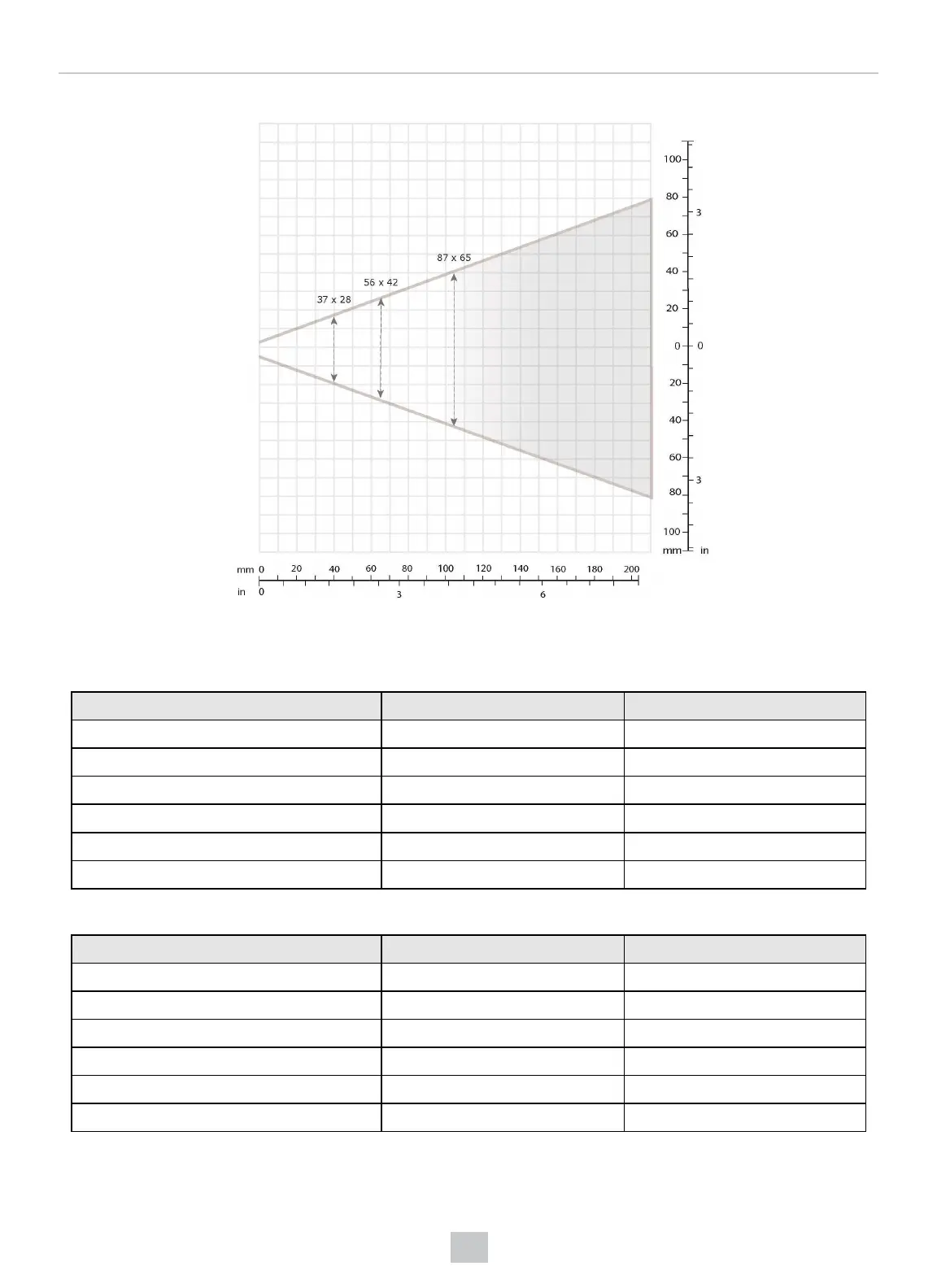 The following tables show the FoV widths of the 6.2 mm lens focused to 190 mm at various distances.