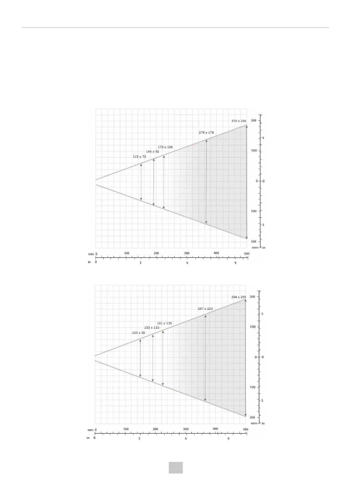 The horizontal and vertical field of view is shown for working distances of 150 mm, 190 mm, 225 mm, 375 mm and 500