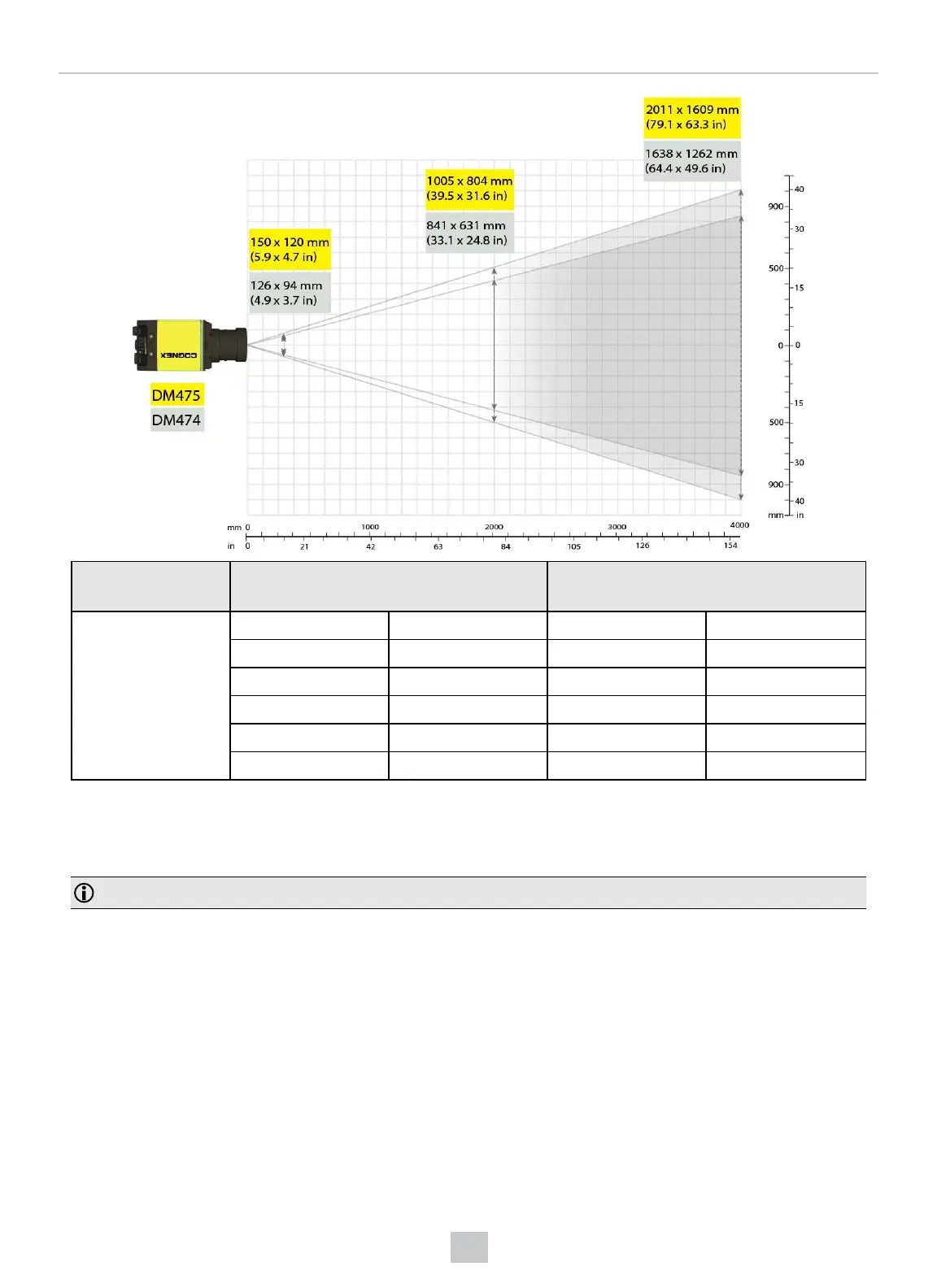 The following map shows the FoV of the DataMan 470 series readers with a 24 mm high-speed liquid lens.