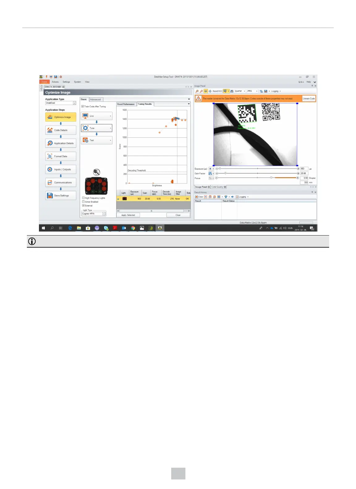 focal distance. Use this feature to create an optimum setting to read your DataMatrix codes.