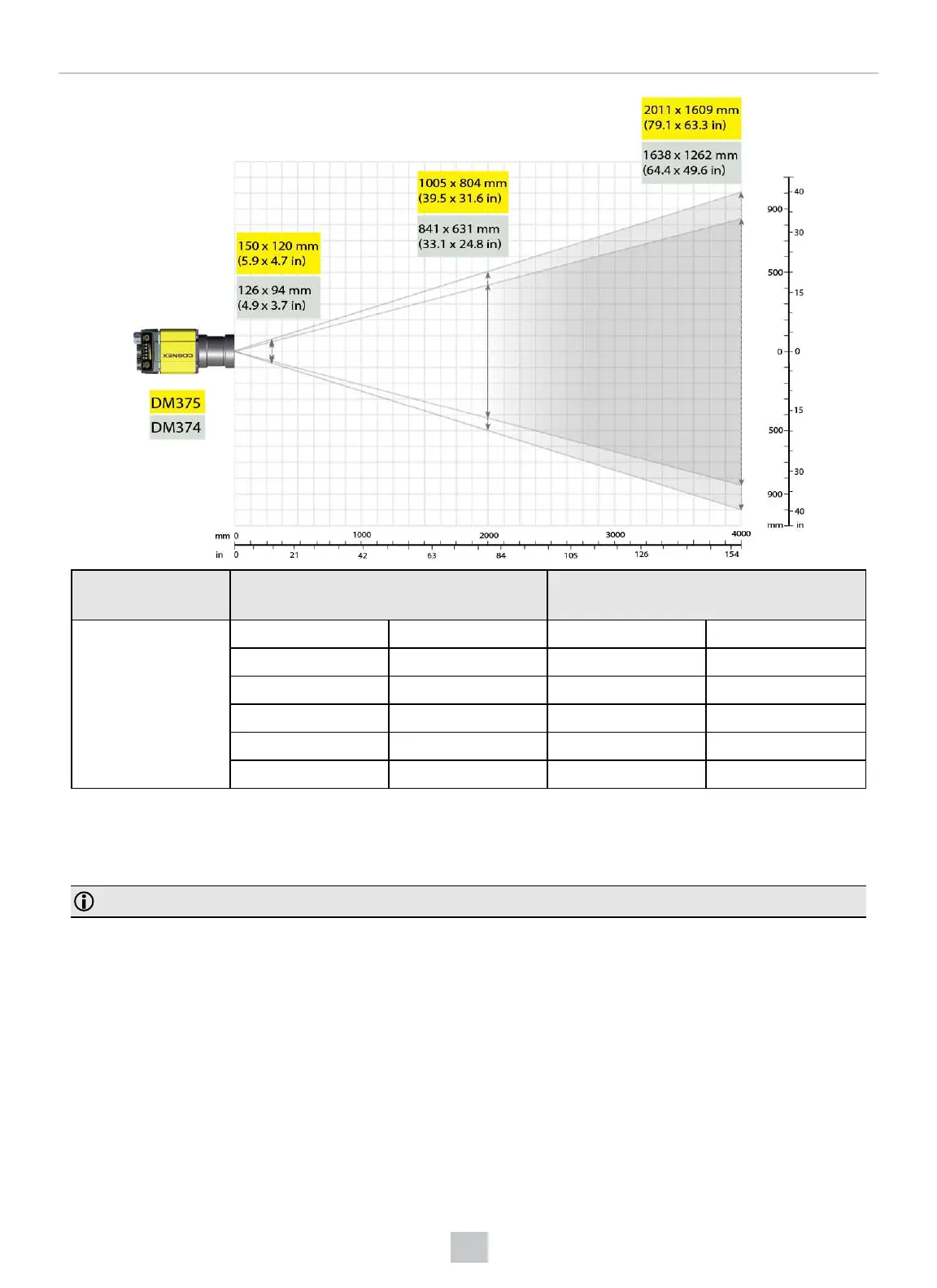 The following map shows the FoV of the DataMan 370 series readers with a 24 mm high-speed liquid lens.