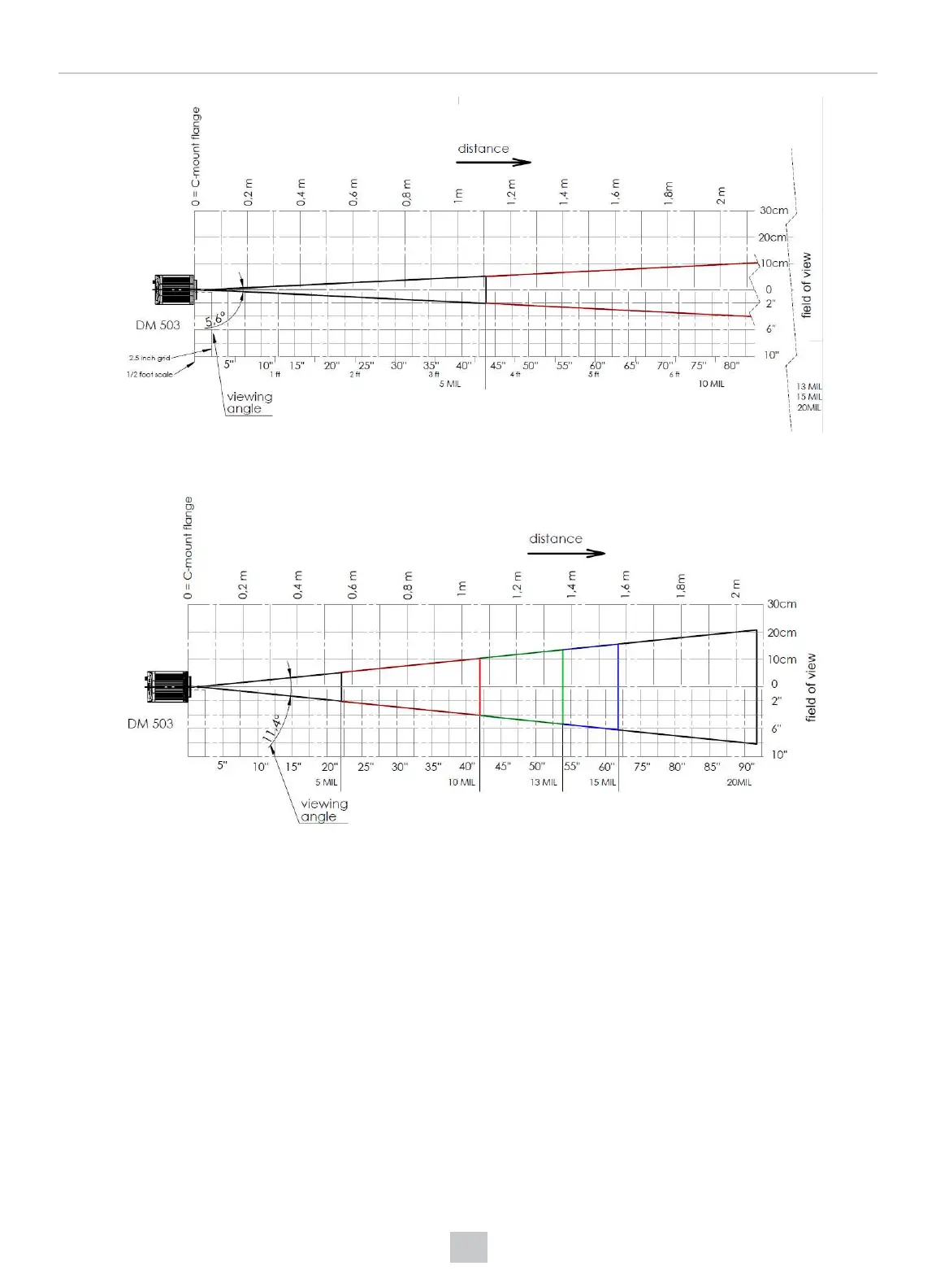 The following map shows the reading distance and field of view charts for the DataMan 503 reader with a 35 mm lens for