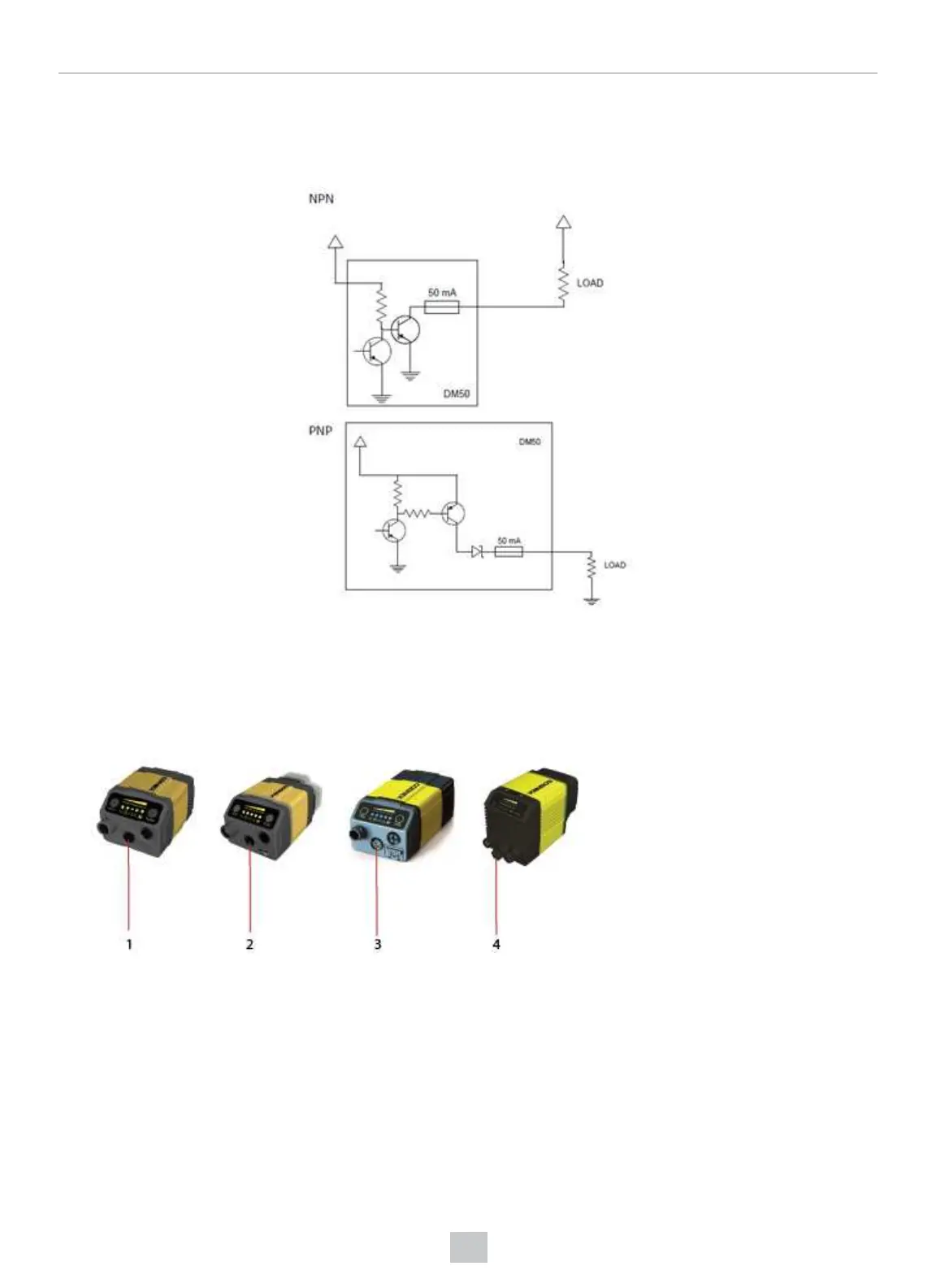 The following image shows the external load strobe output for the DataMan 50. The DataMan 60 has the same