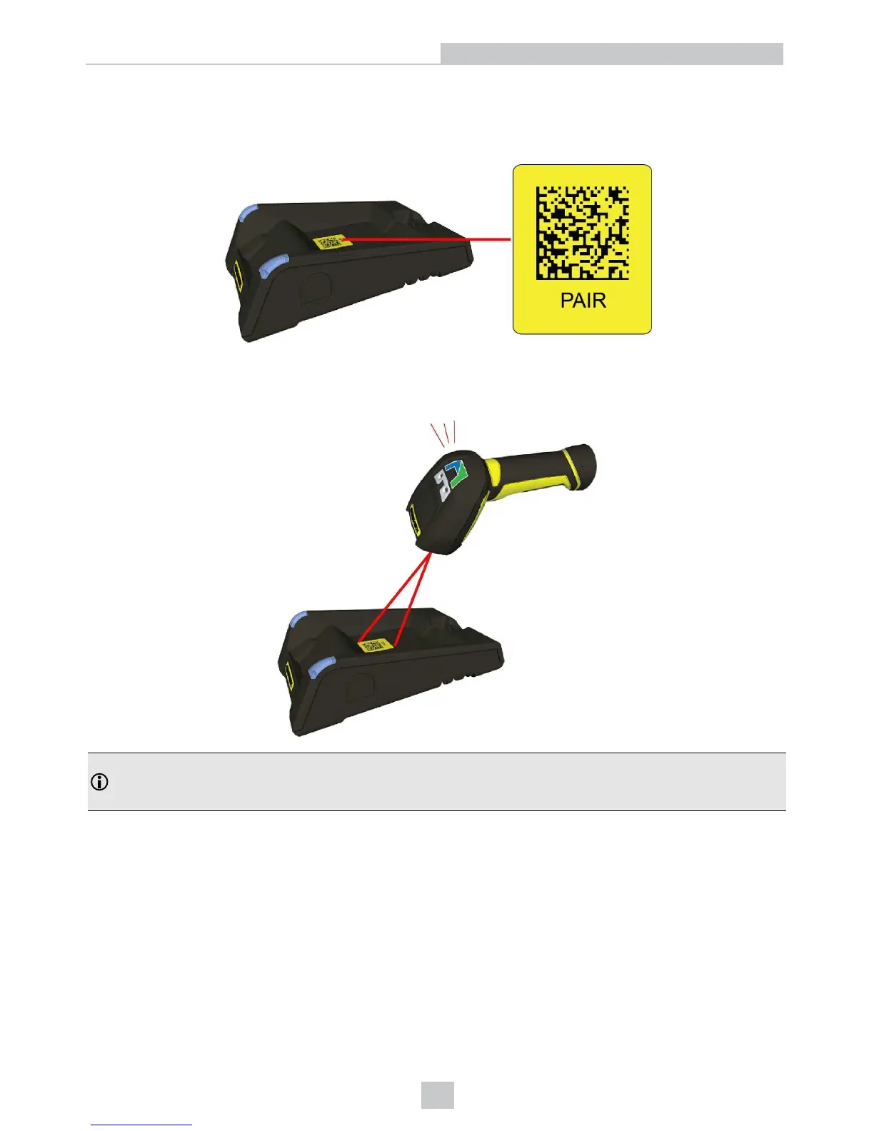 Note: Scanning the Pair code puts the base station and the reader put on it into force pairing mode. This means