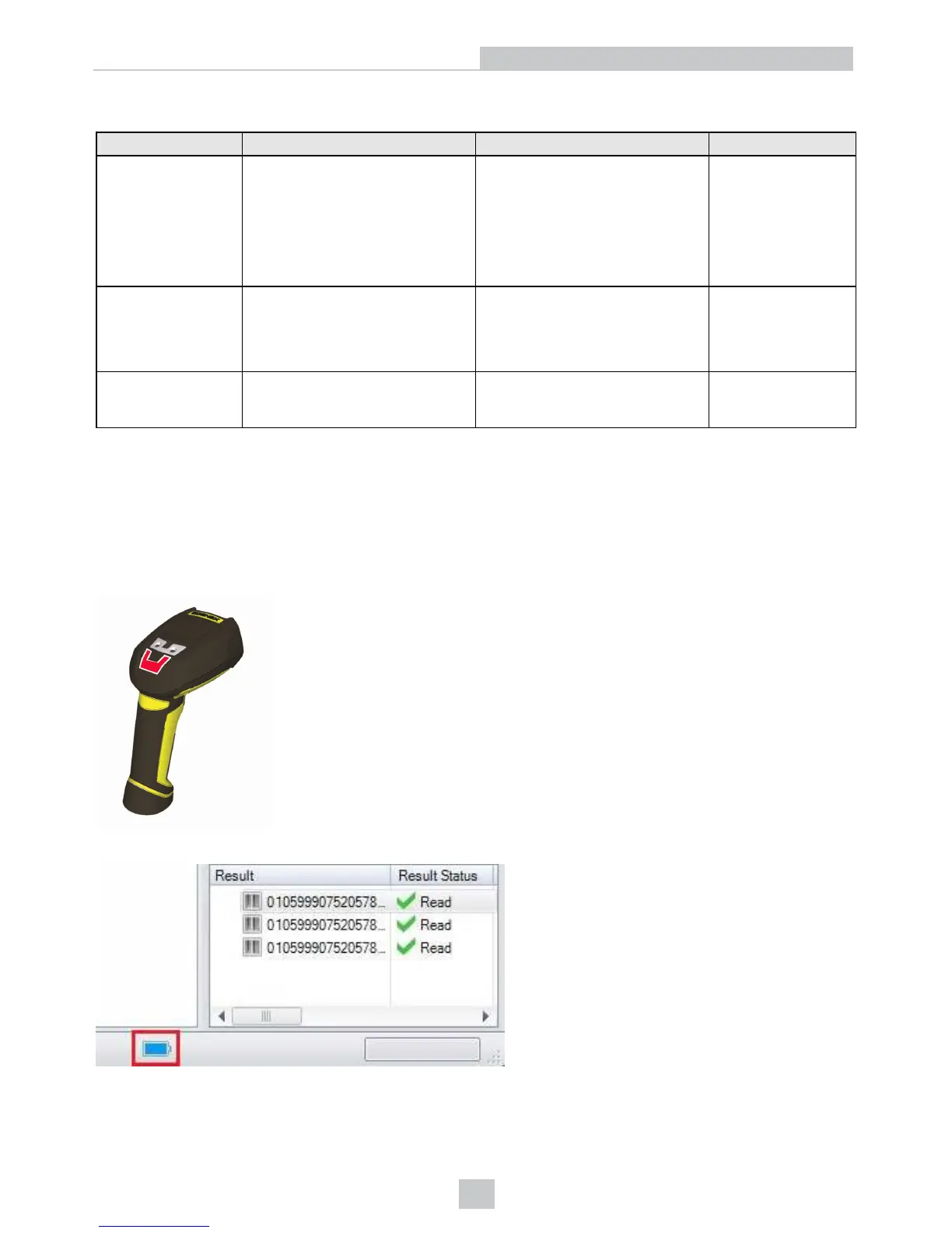 When you are reading codes with your wireless reader, blinking red status indicators will indicate a low battery. As the