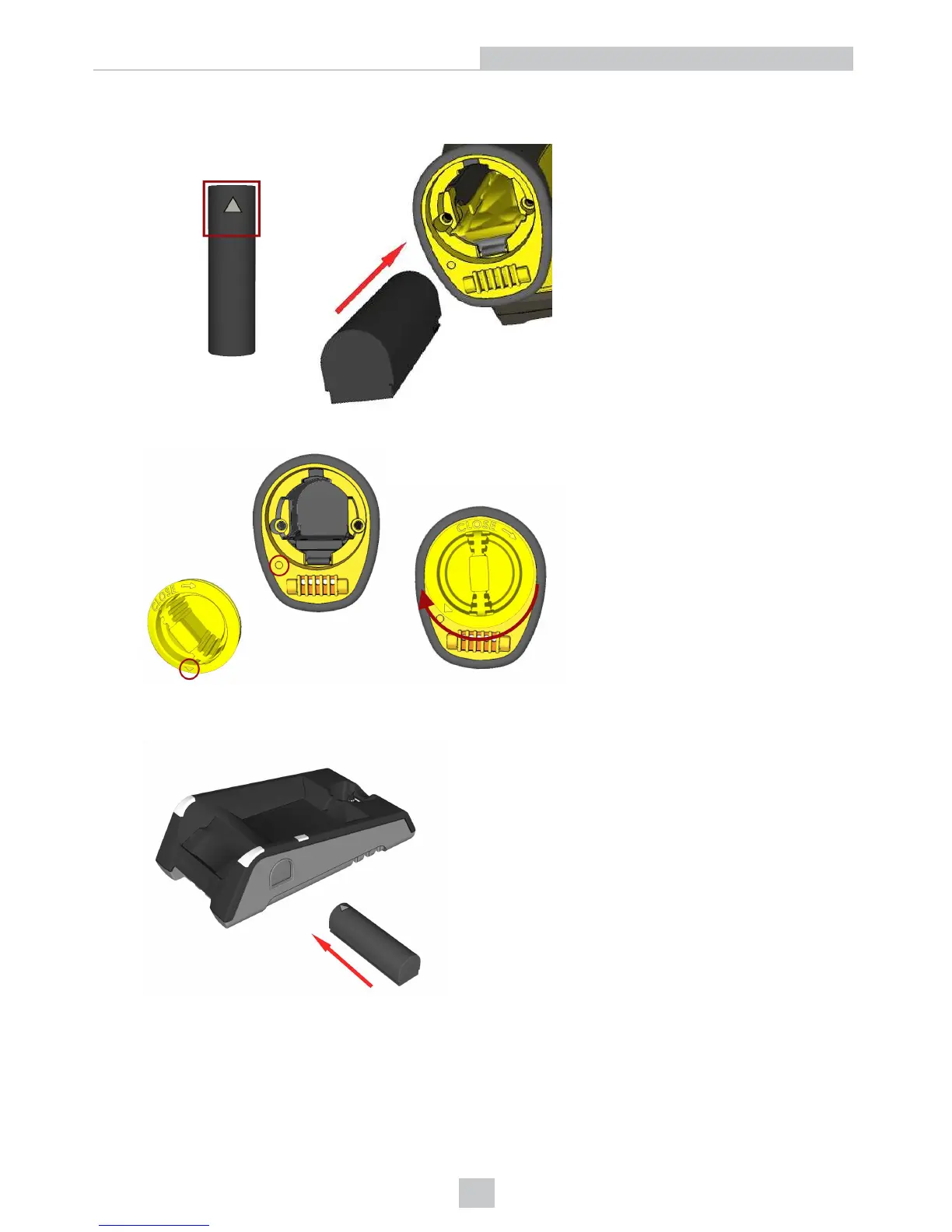 5. If using DMA-CBASE-01, place the battery in the spare battery charger in the direction of the small triangle of the