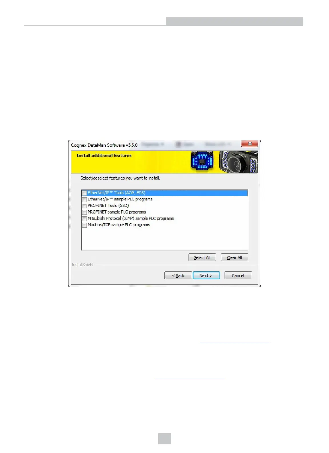 Select the industrial protocol tools and sample programs when installing the DataMan Setup Tool.
