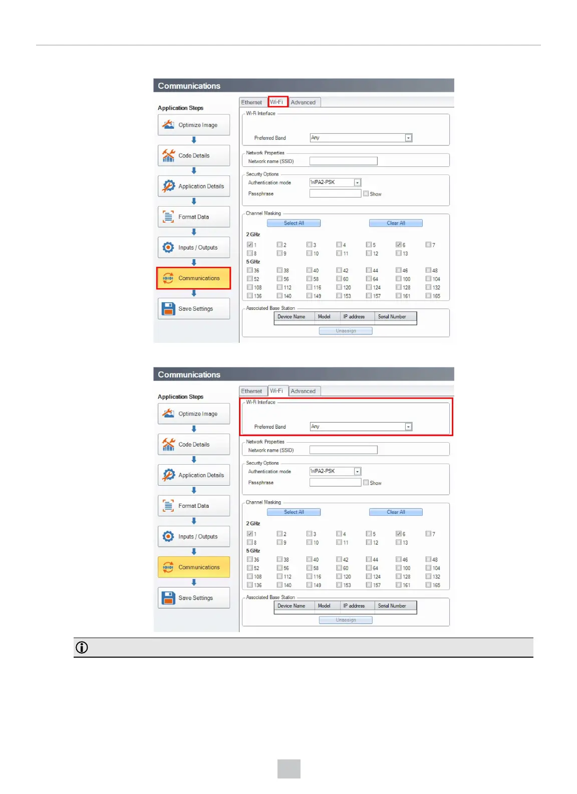 3. Navigate to the Communications application step and choose the Wi-Fi tab.