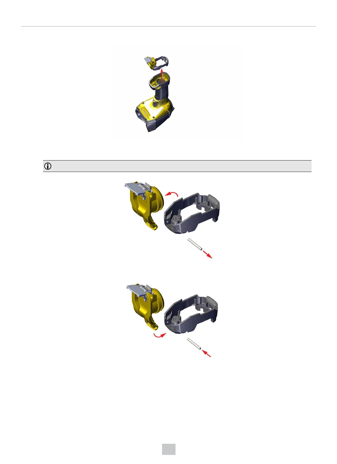 3. Remove the yellow latch and the gray base.