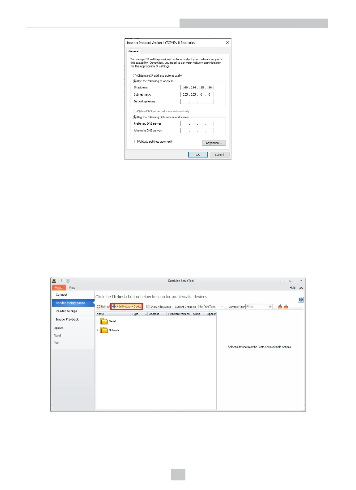 1. In the DataMan Setup Tool’s Reader Maintenance page, click Add Network Device.