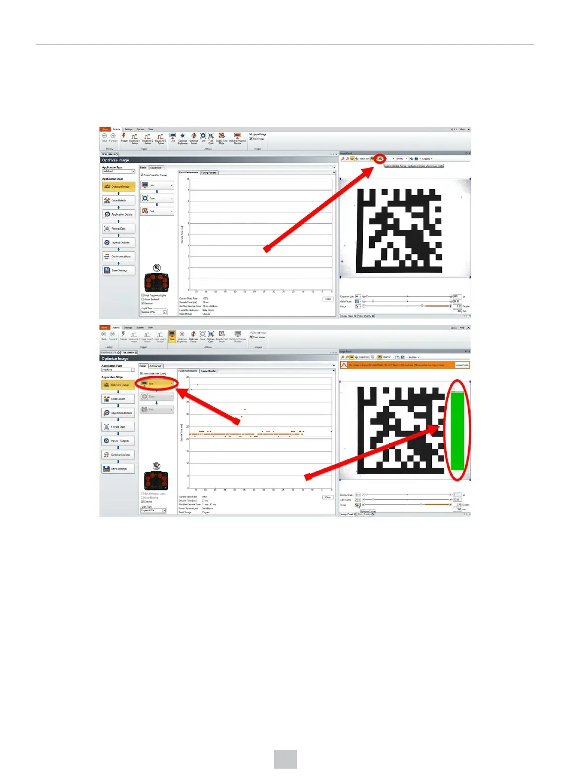 Click the Focus Feedback button in the image panel in SetupTool to enable focus feedback.