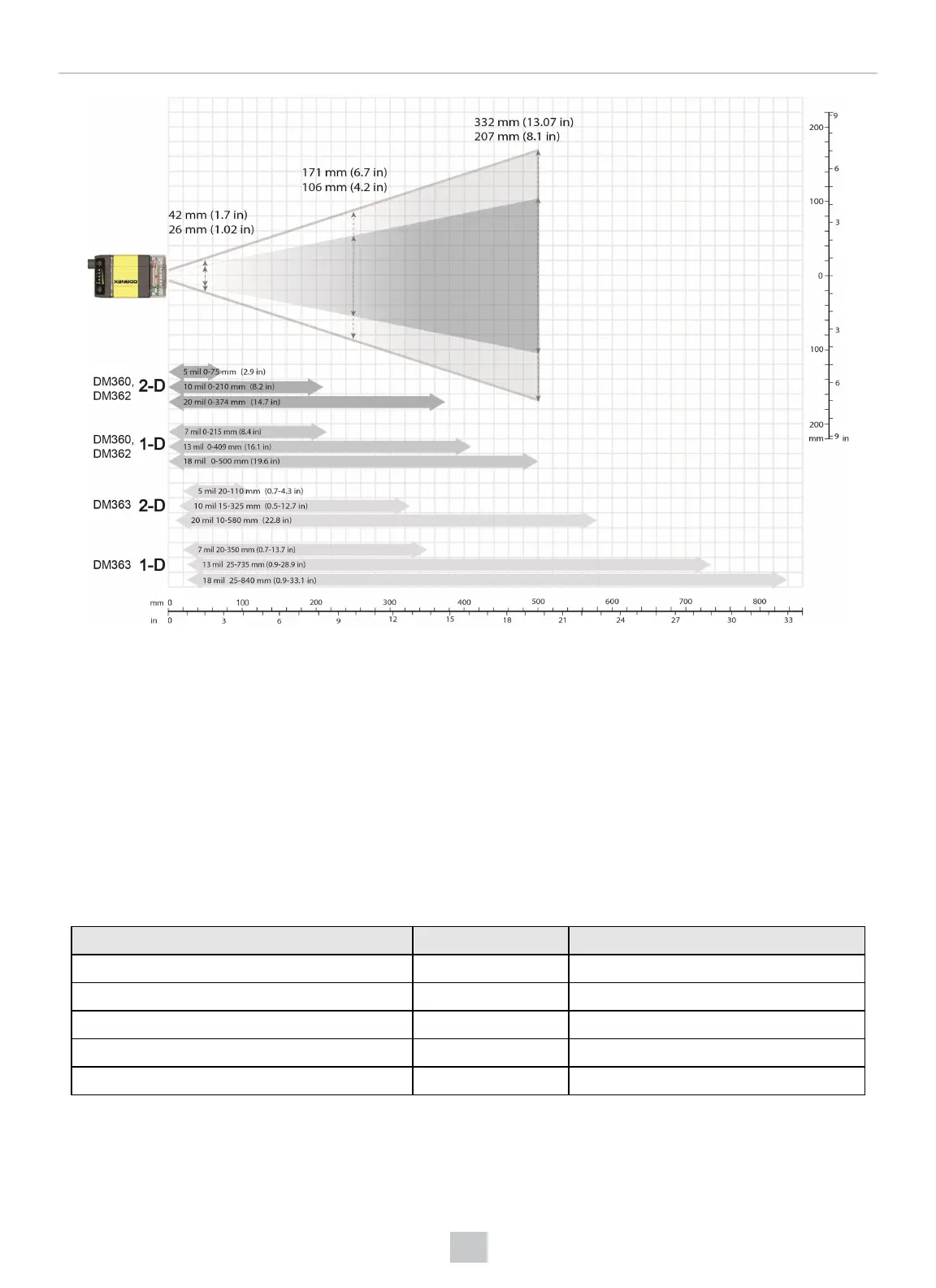 The reading distances for the DM360 and DM362 readers are the same. DM363 features a higher resolution and more