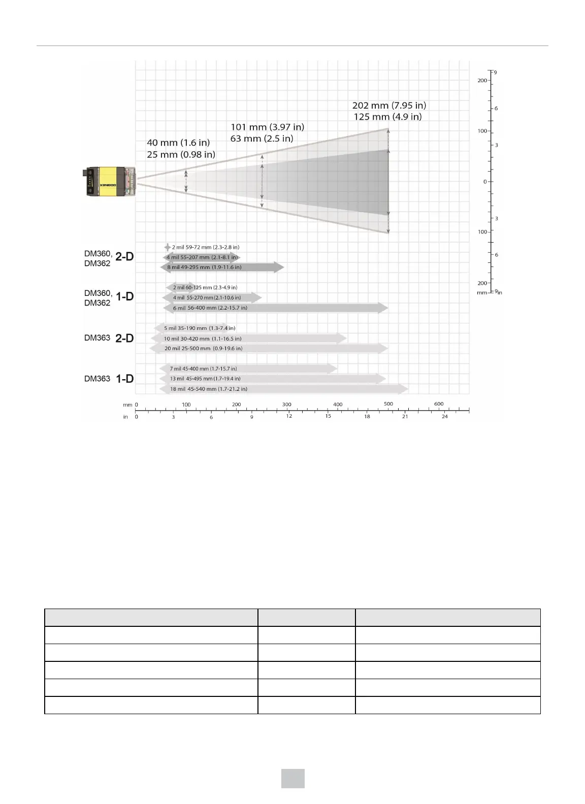 The reading distances for the DM360 and DM362 readers are the same. DM363 features a higher resolution and more