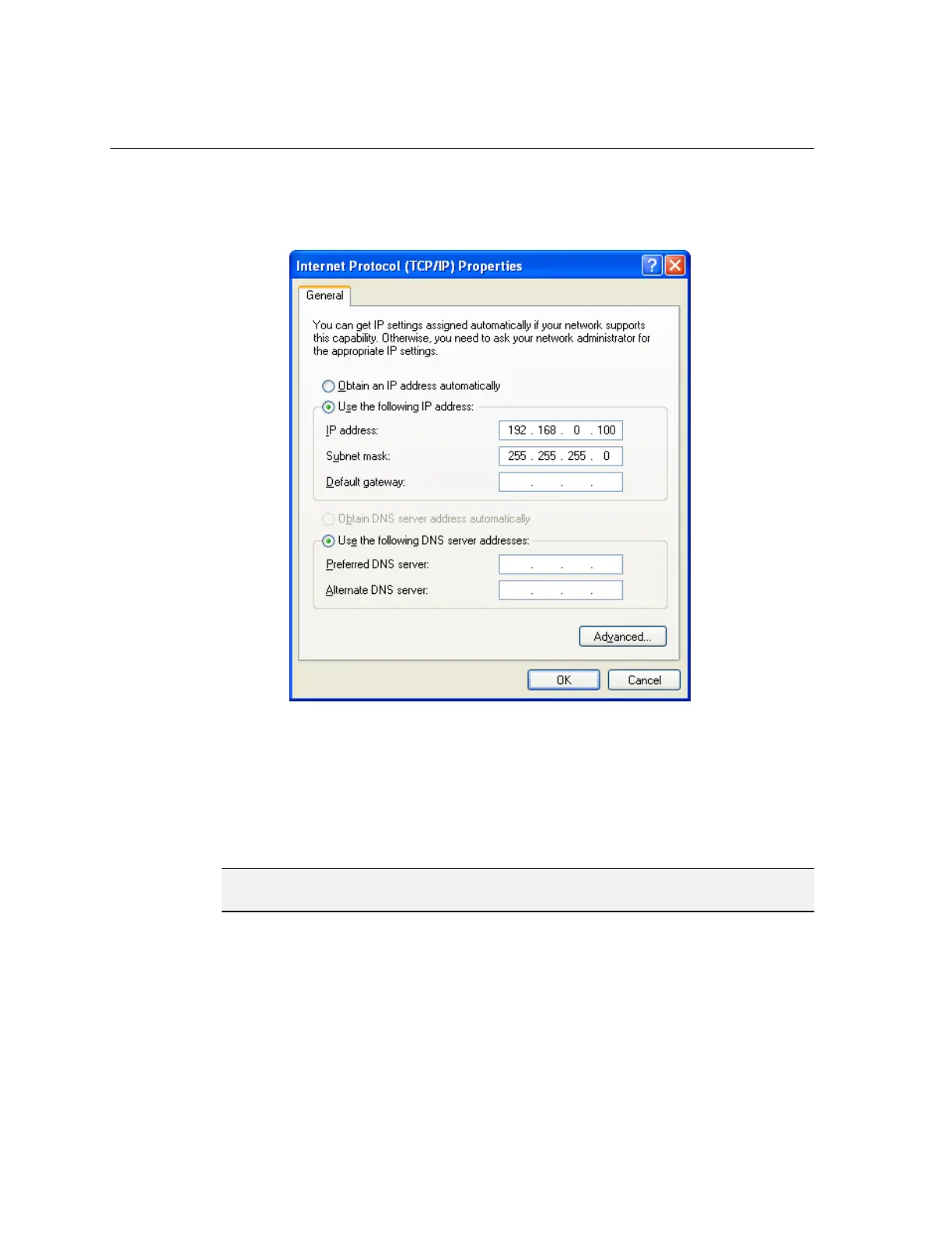 7. For Non-DHCP networks, click the “Use the following IP address” radio button