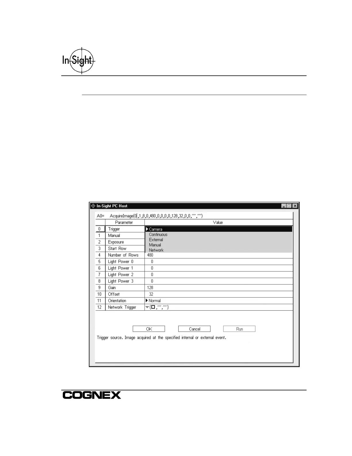 block on the back of the In-Sight camera (Figure 2-3). Remember to set the Trigger