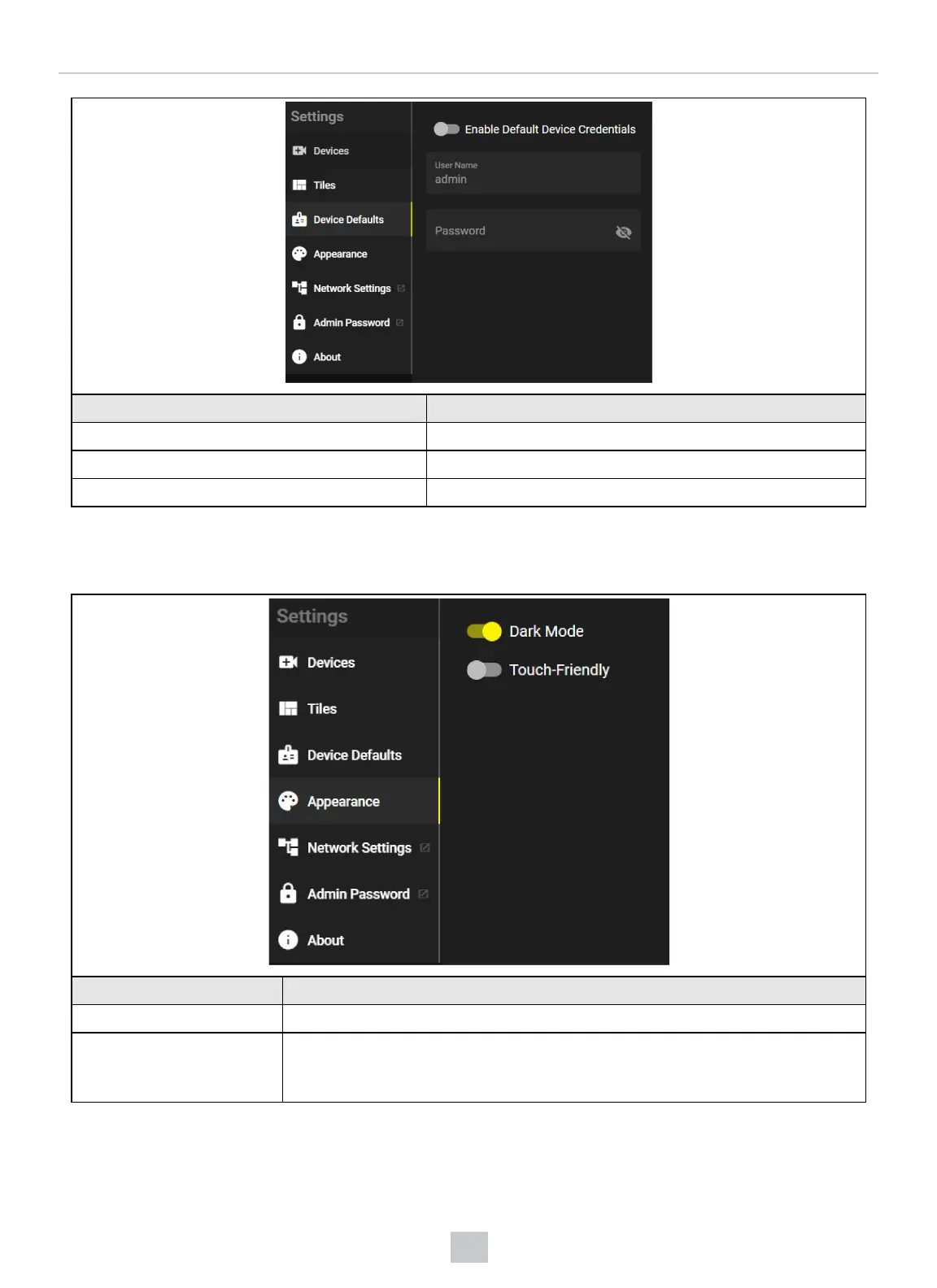Enable Default Device Credentials Toggle the default device credentials on or off.