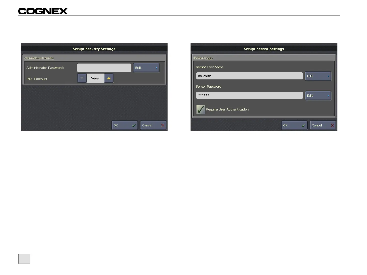 User Name are configured on the sensor using the In-Sight
