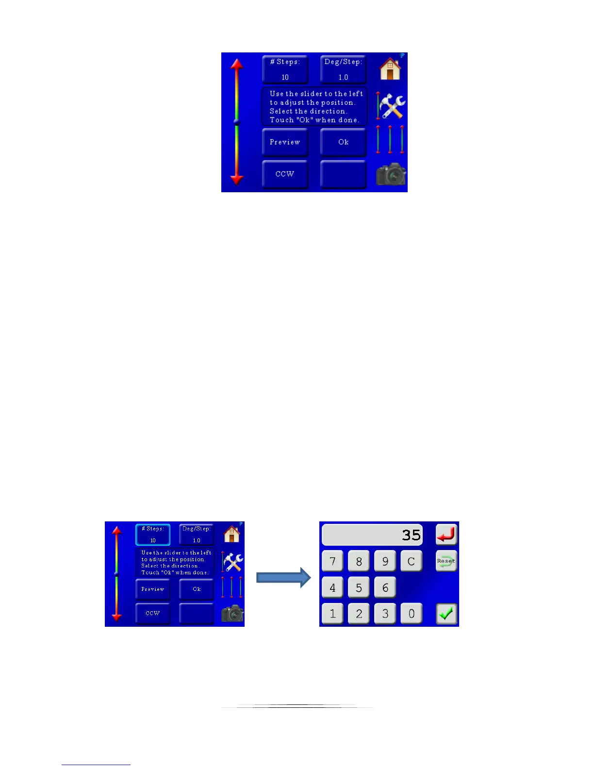 You can adjust the number of steps (motor moves) by pressing the “# Steps” button and then