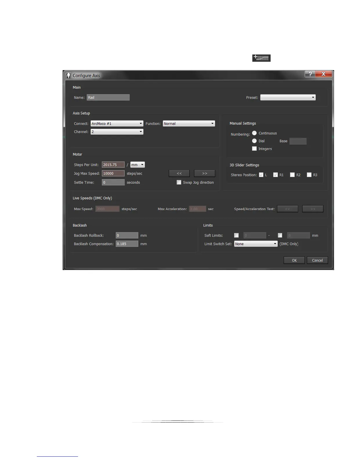 We’ll add a second axis for the macro-rail by clicking the “Add Axis” icon: