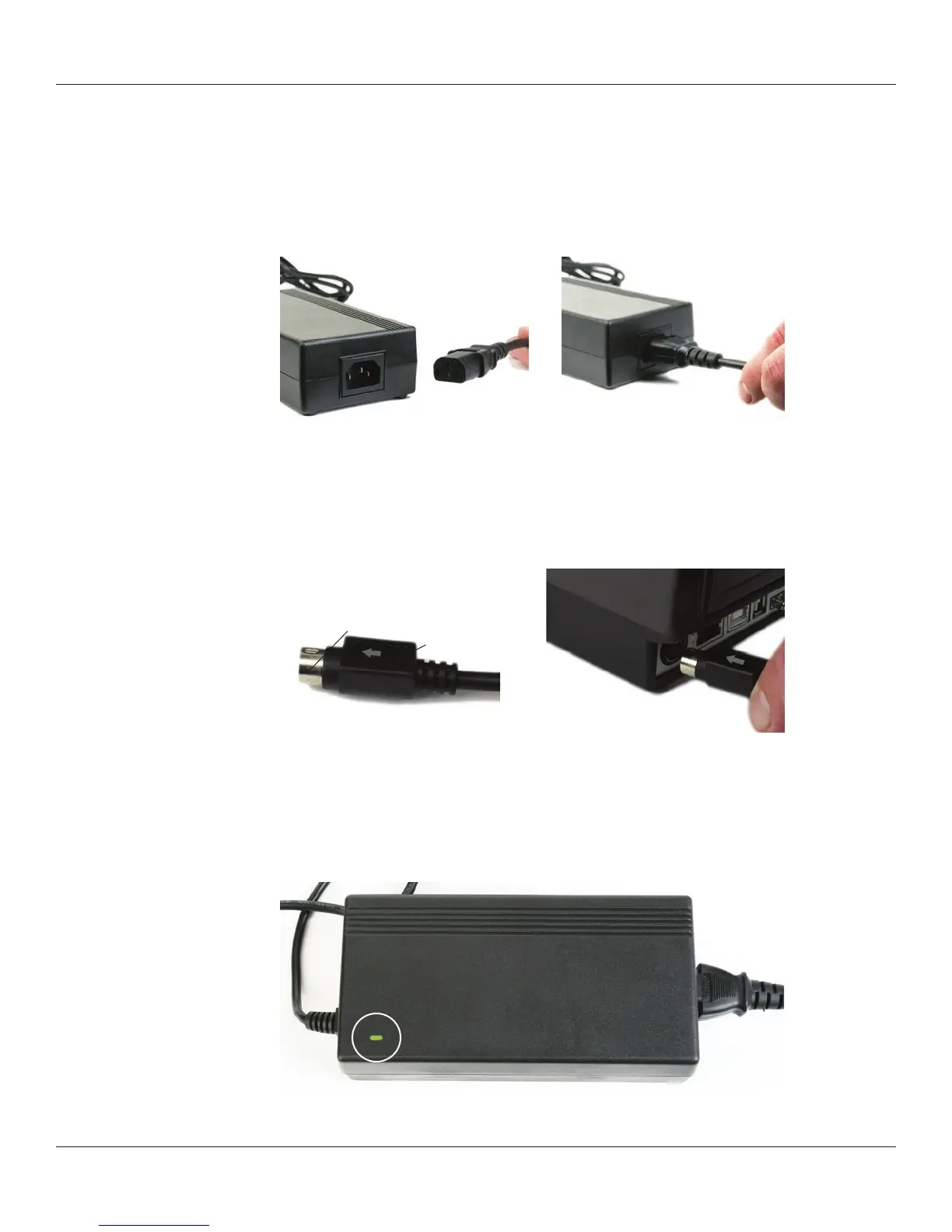NOTE: ONCE THE POWER SUPPLY IS PLUGGED INTO THE WALL, THE GREEN LED