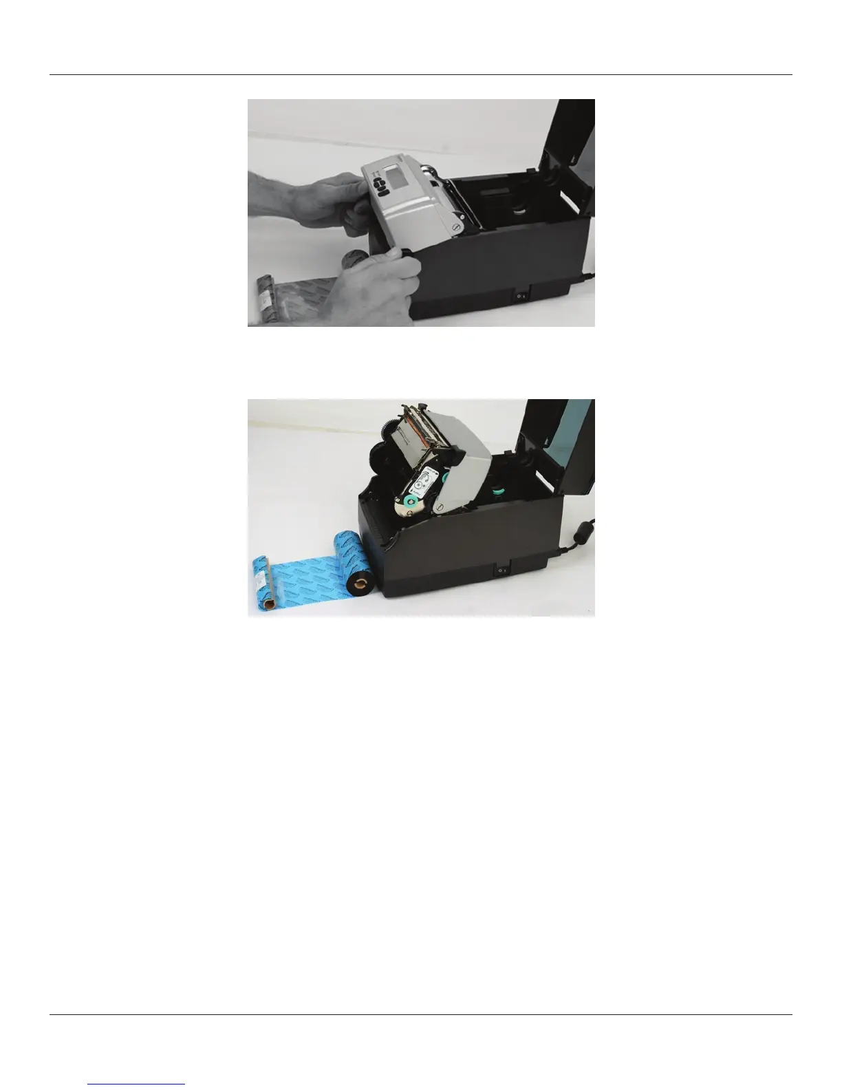 Next, insert the ribbon supply roll. Lift the ribbon supply roll, as shown in Figure 2-26,