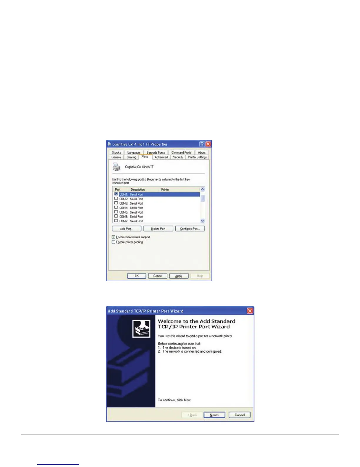 To print using the driver, a new port must be congured within the printer driver.