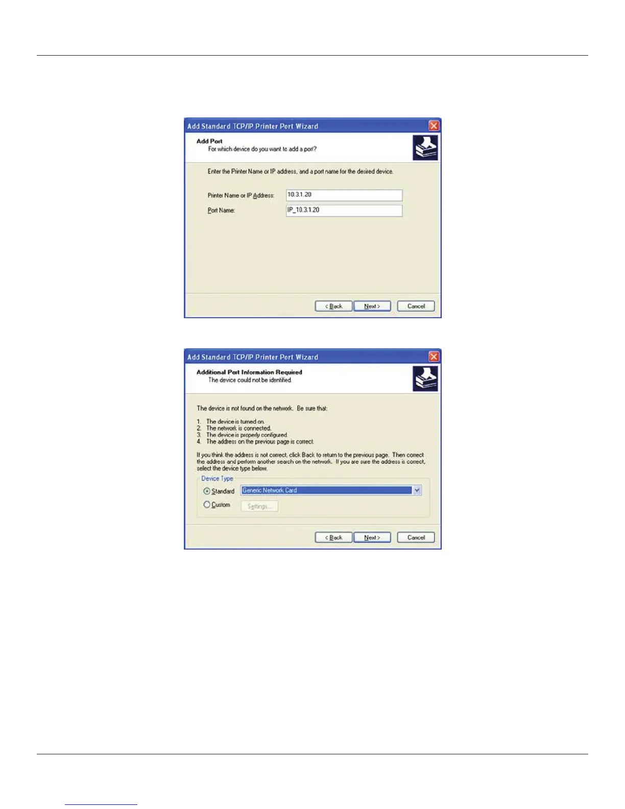 7) In the Printer Name or IP Address box, enter the IP address assigned to the printer.