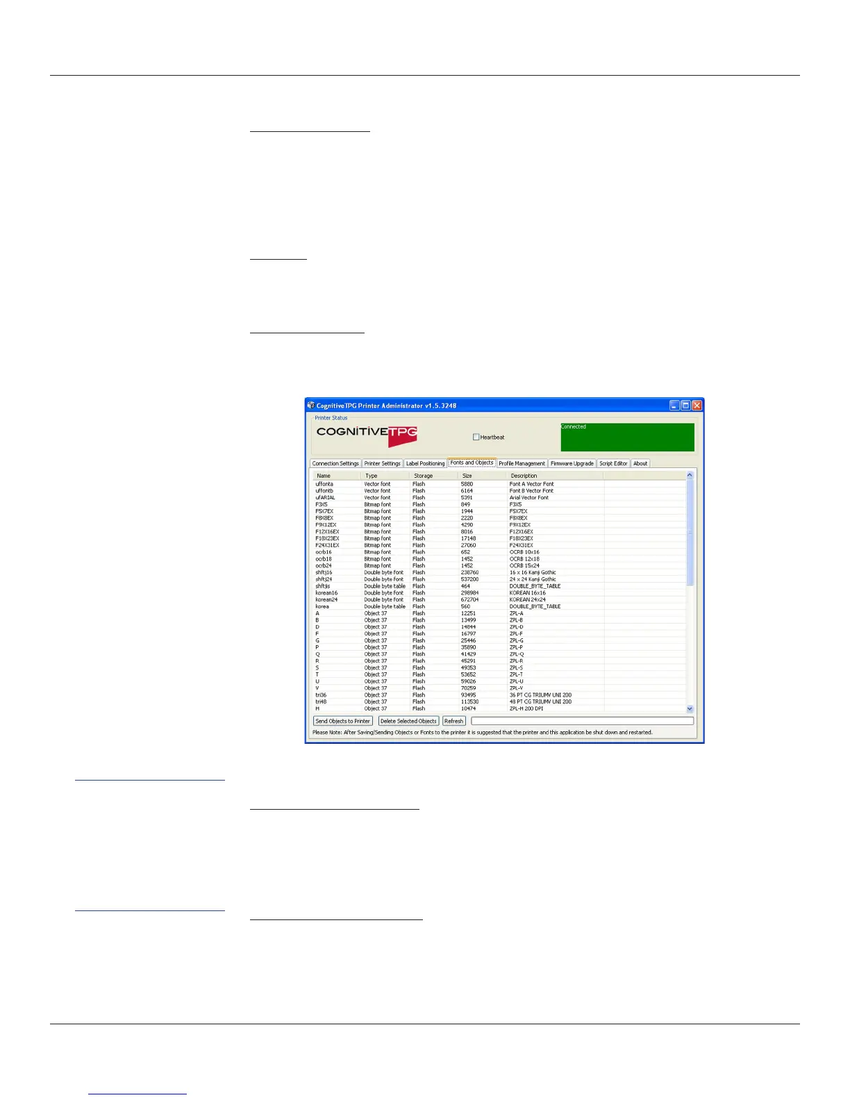 1. Select the Fonts and Objects tab in CognitiveTPG Printer Administrator.