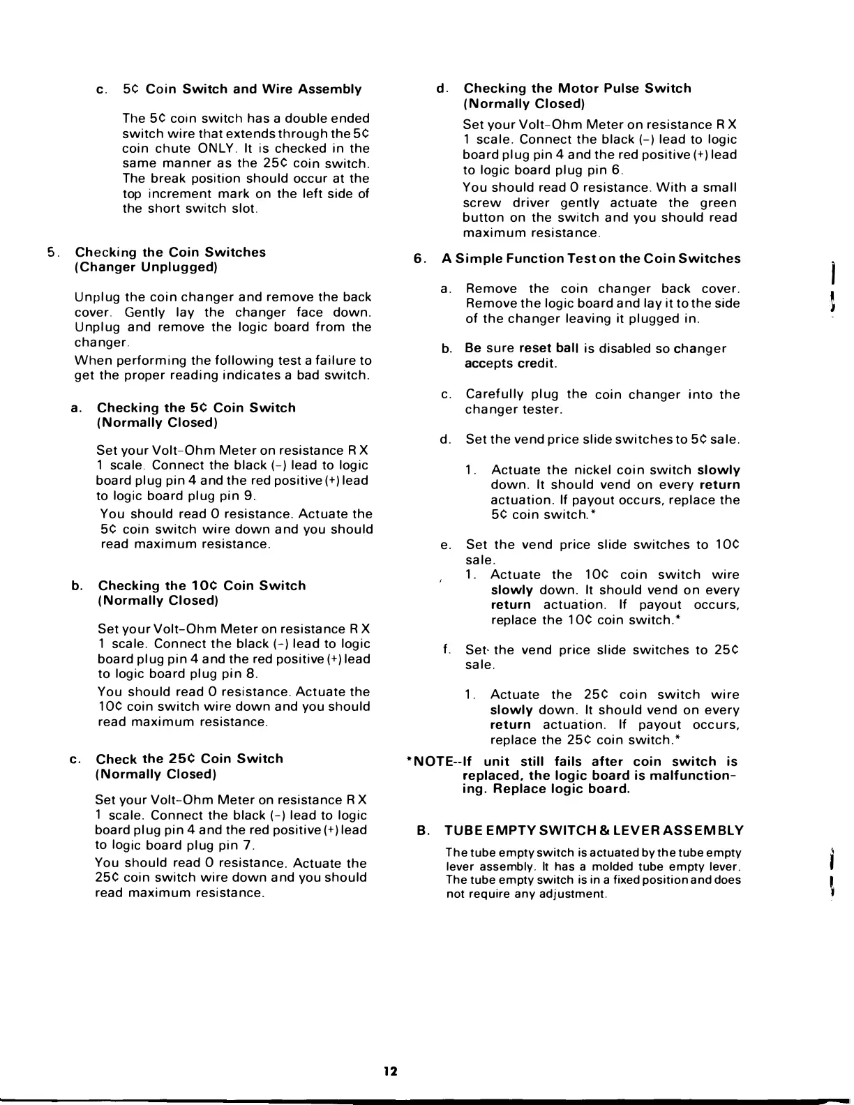 Coinco S75-9800A - Coin Switch Function Tests