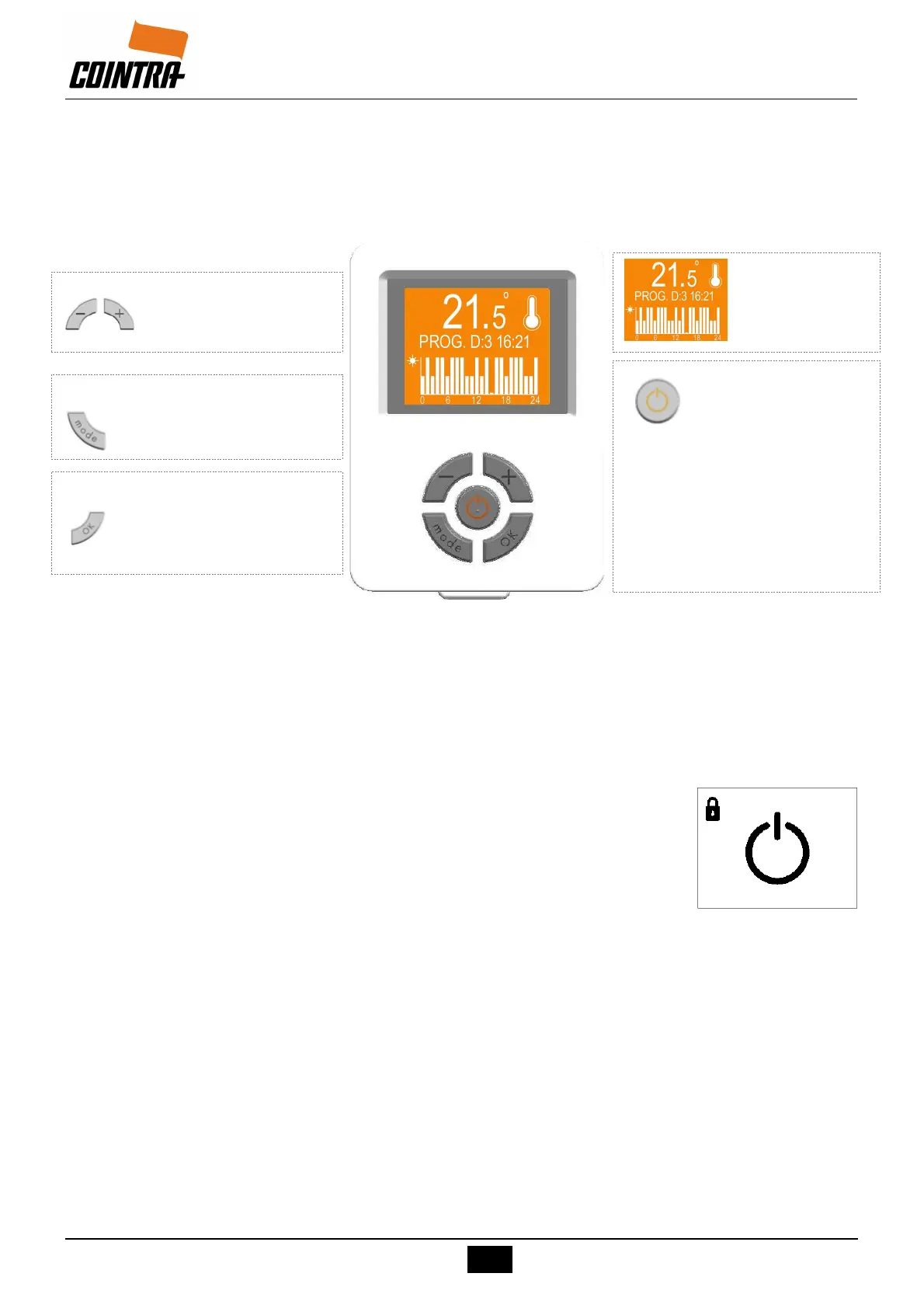 temperaturas selecionadas e o estado (Standby / Operacional e bloqueado /