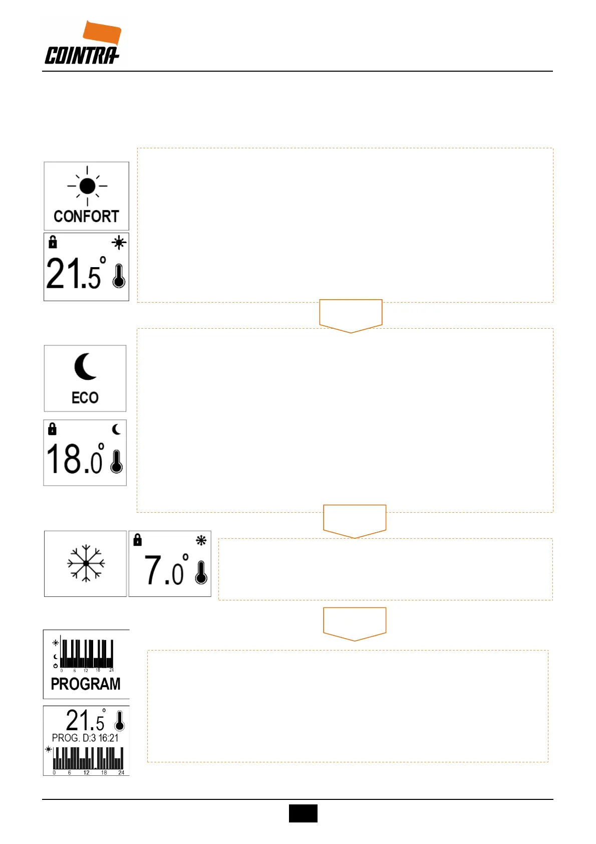 comfort, eco or heating off. The bar showing the current time flashes to indi-
